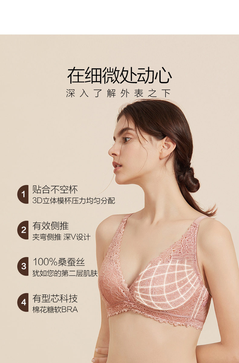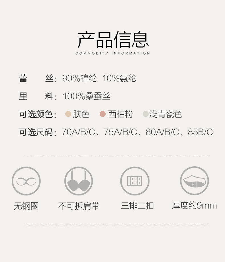 金三塔真丝无钢圈内衣女桑蚕丝薄款透气聚拢胸罩文胸NZFAB308
