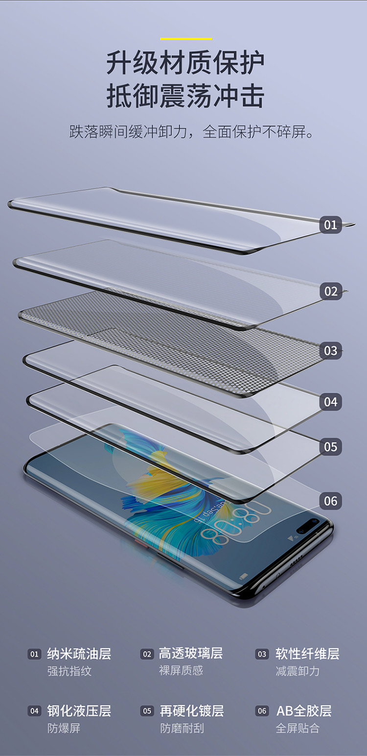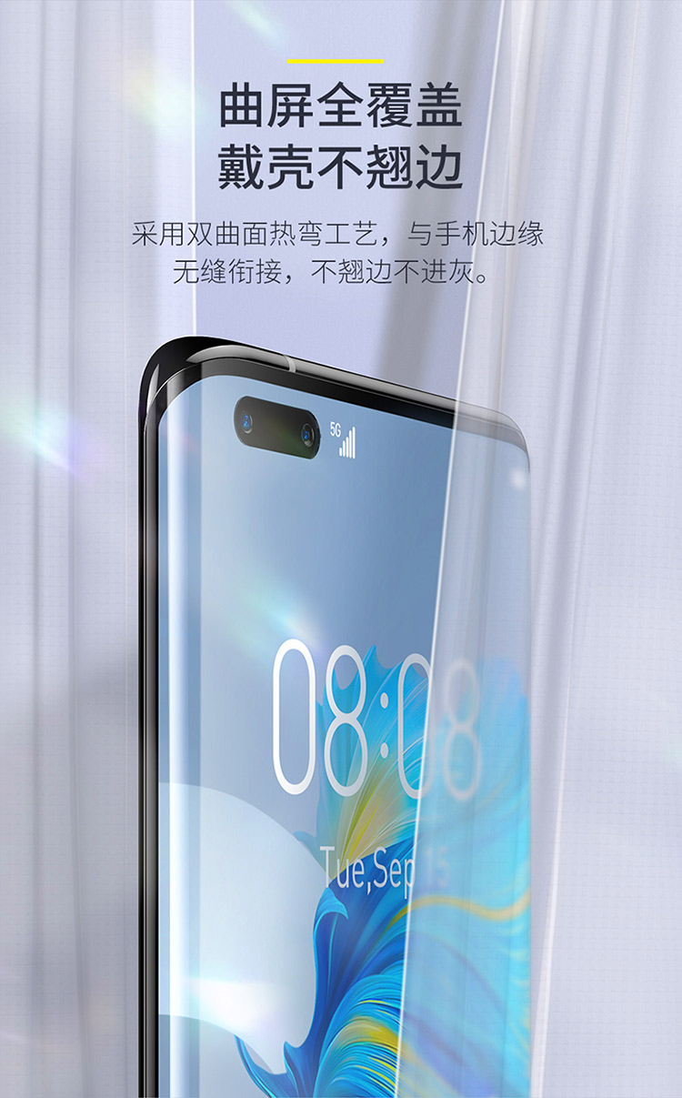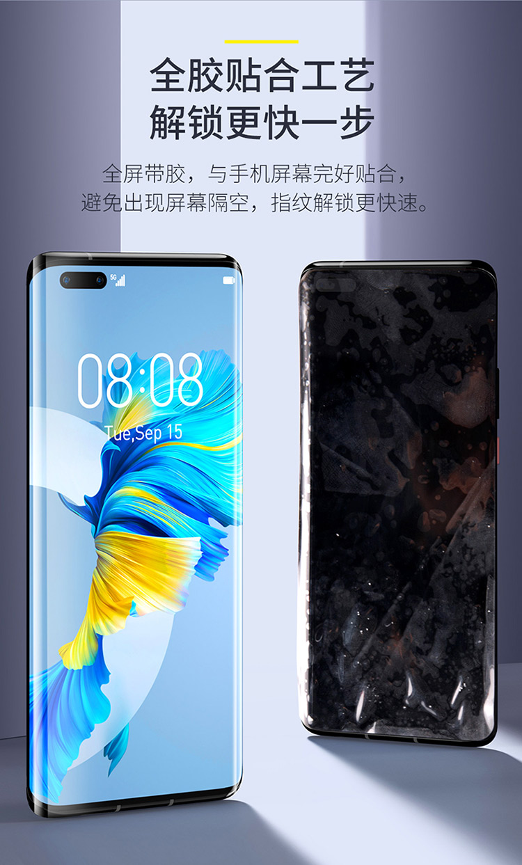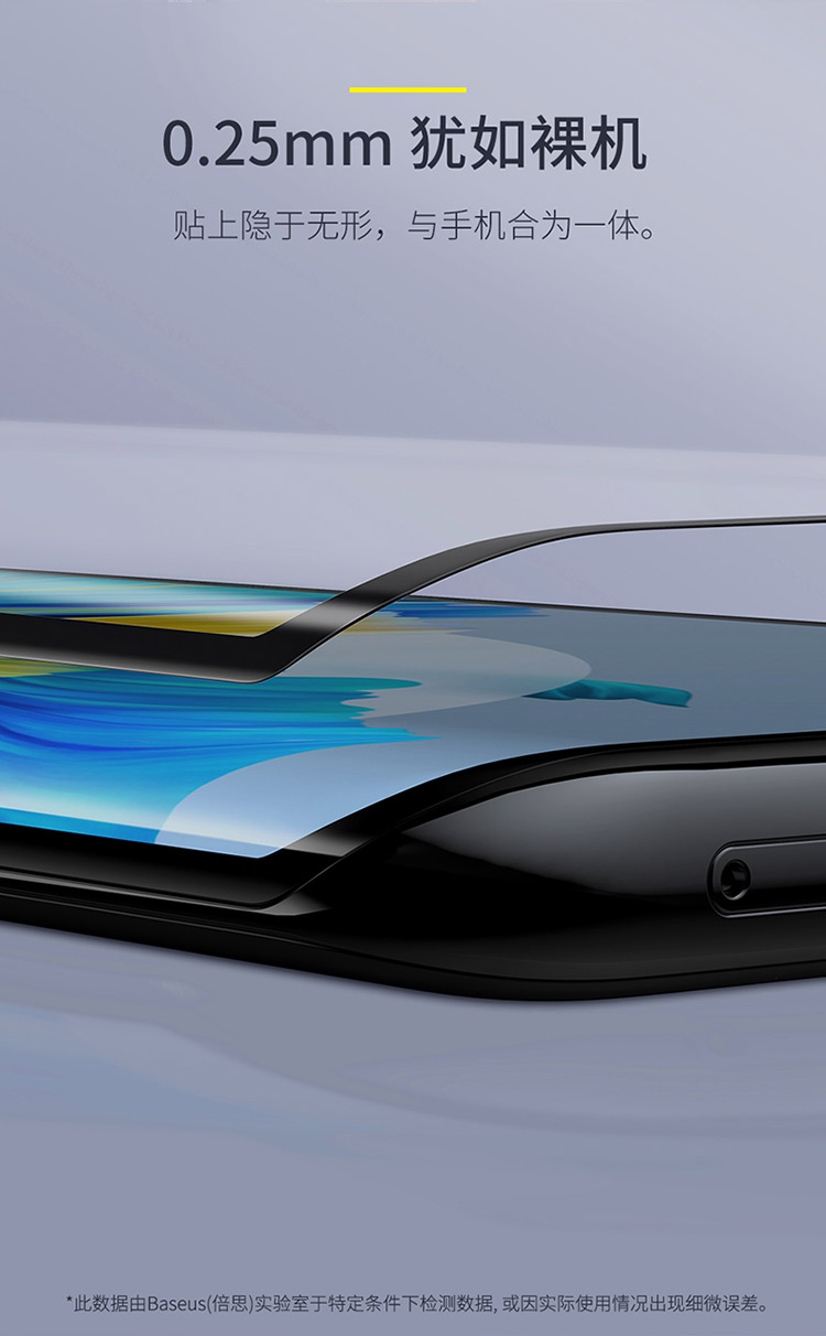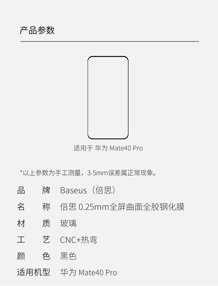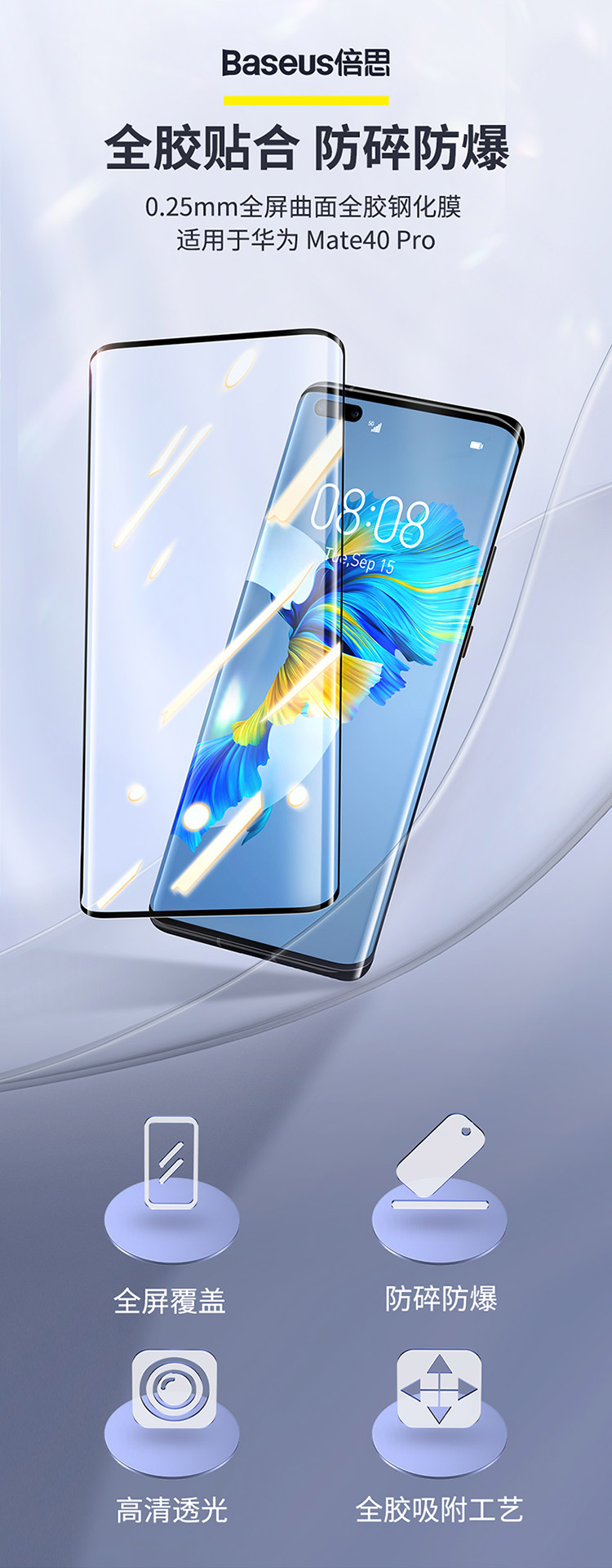 倍思 0.25mm全屏曲面全胶钢化膜 For 华为 Mate40 Pro (单片装) 黑色(含:清洁包+超级贴膜神器)