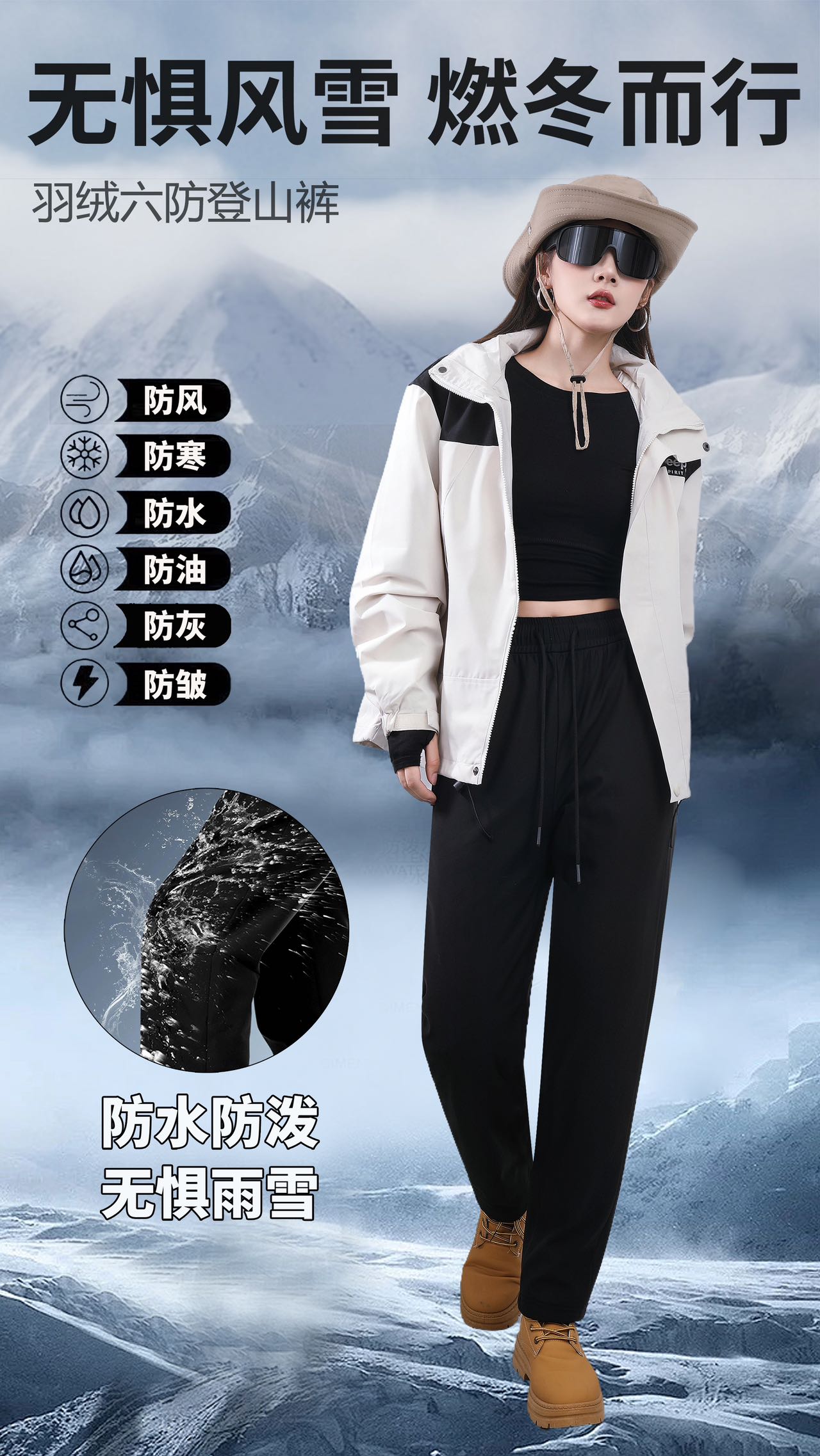 悦小棉 三防羽绒登山裤,防风防泼黑科技,甄选腹部高品质大绒朵,无惧风雪