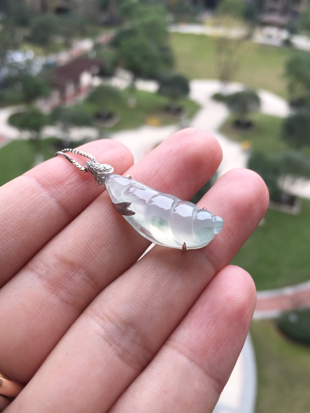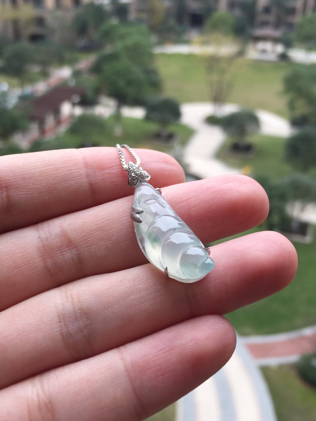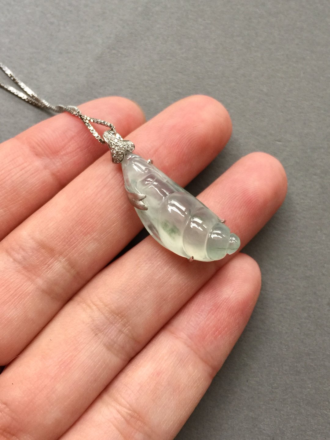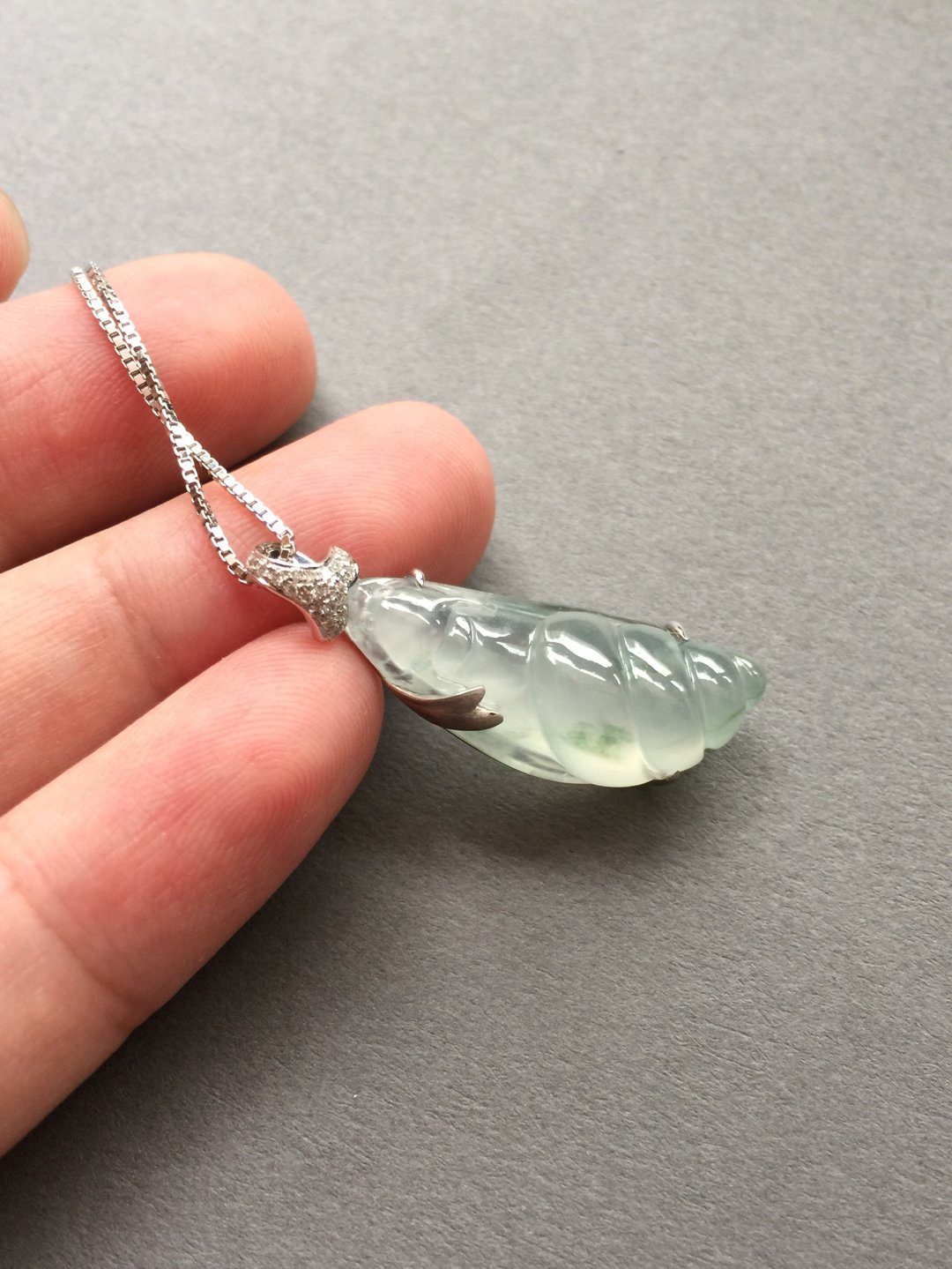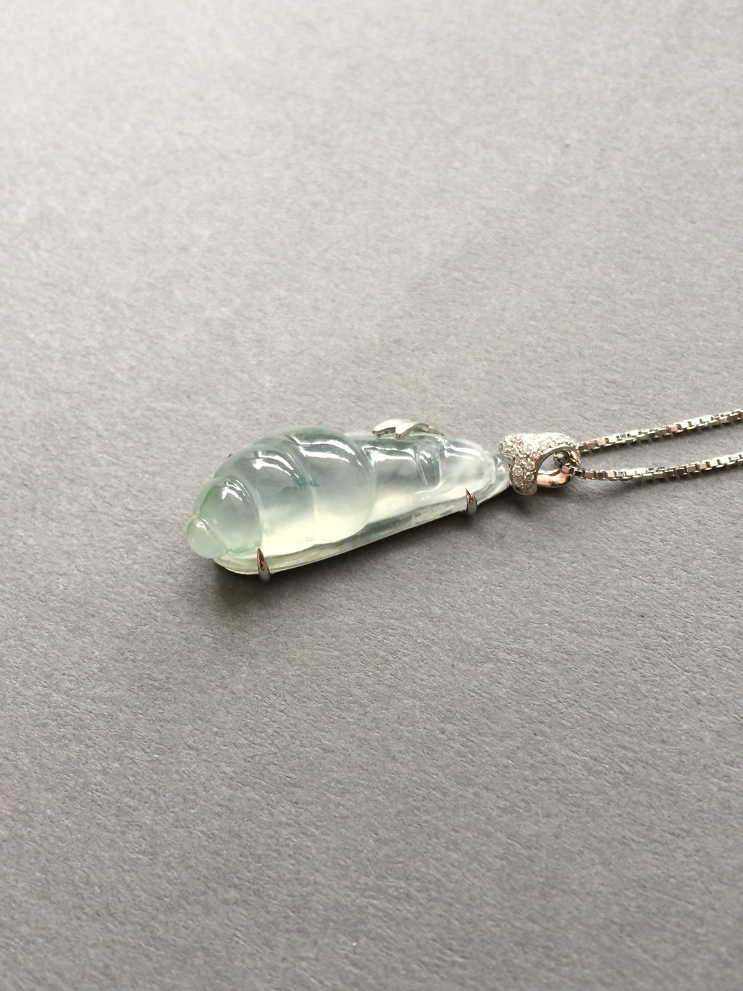 生活节奏太快,需要放慢脚步,翡翠高冰种飘花蜗牛,慢生活,27.5*11.6*7.5mm,镶嵌后33*11.5*7.6mm。荧光四射的高种水漂亮宝贝,每一笔刻画都非常精致。设计师款镶嵌设计,白金加钻石。简洁利落,没有任何拖泥带水的冗余,上身时尚大方。一件独一无二的特色精品,献给每个都市生活中忙忙碌碌的我们,蜗牛寓意什么?寓意安居乐业,每个都市人的梦想