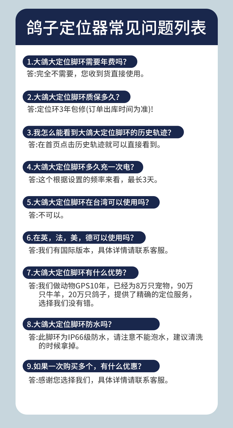 革泰品宁鸽子定位器防丢失GPS北斗追踪器动物定位鸟类飞禽定位j