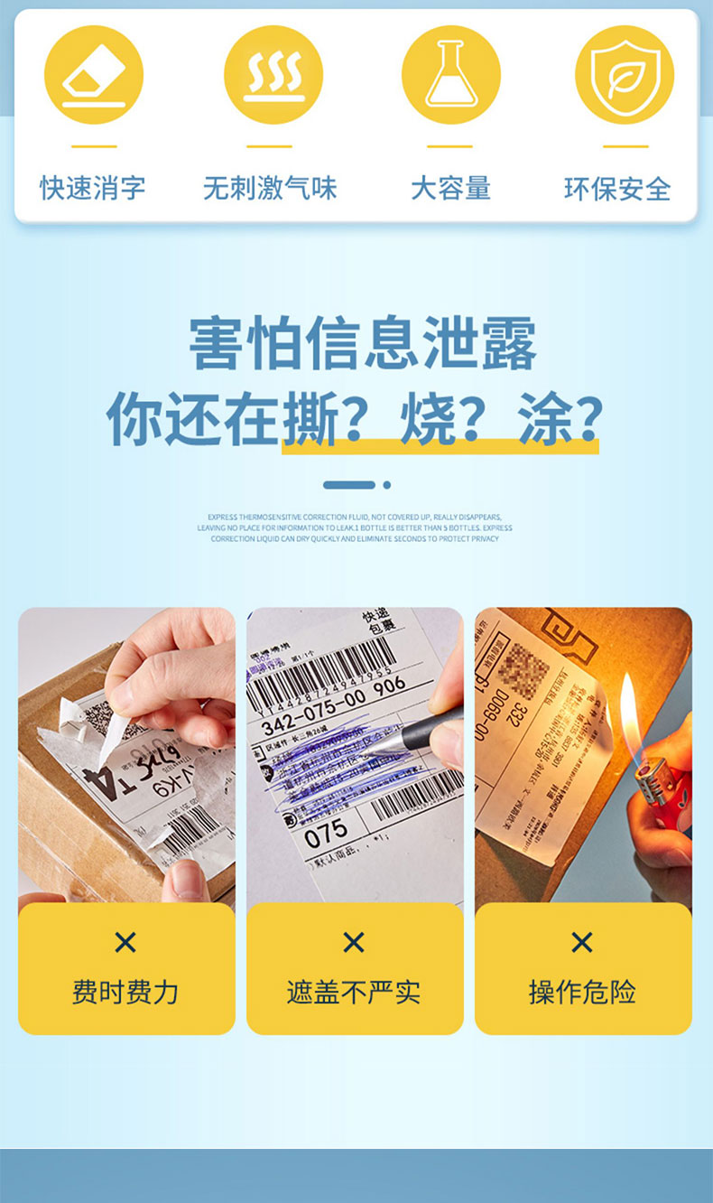 热敏纸涂改液速干50ml 保密印章 快递单信息消除器涂码笔大容量保隐私