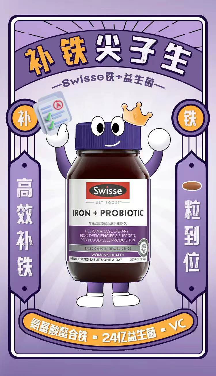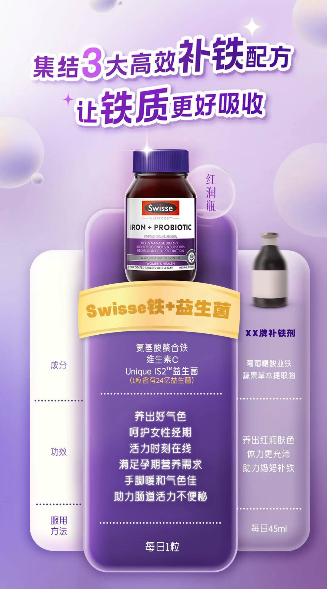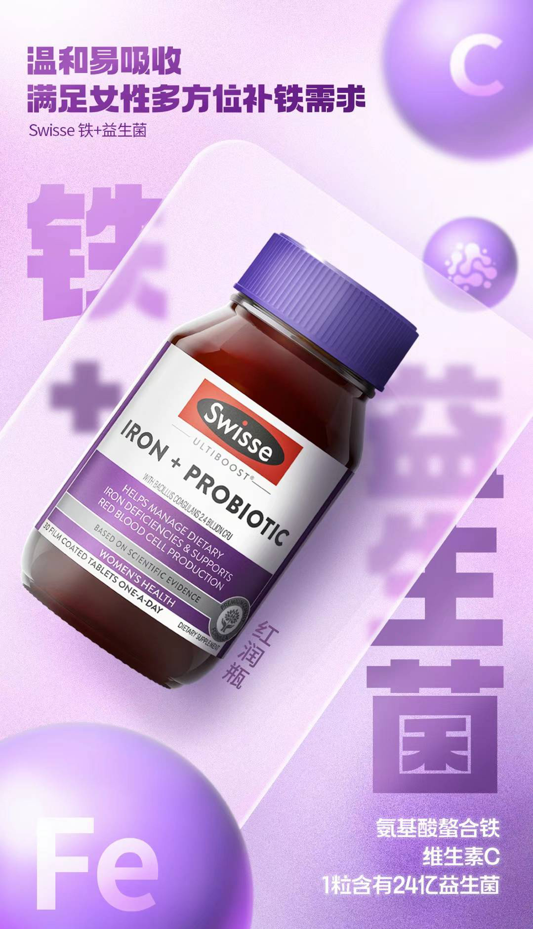 Swisse红润瓶铁益生菌24亿维c片补气血肠胃螯合铁