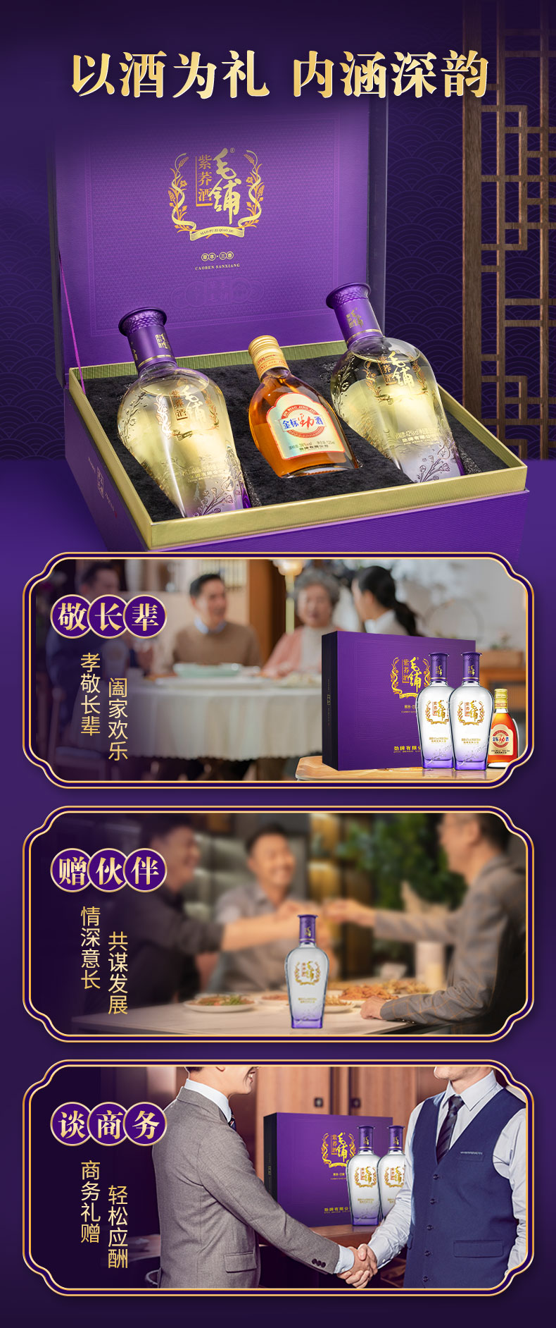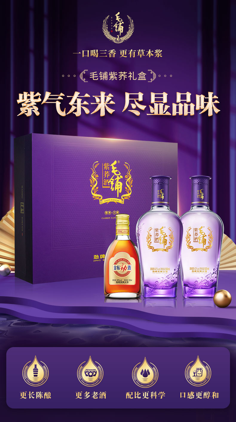 【12月入会礼】125mL36度蓝标劲酒+100mL40度金标劲酒+125mL42度毛铺草本酒