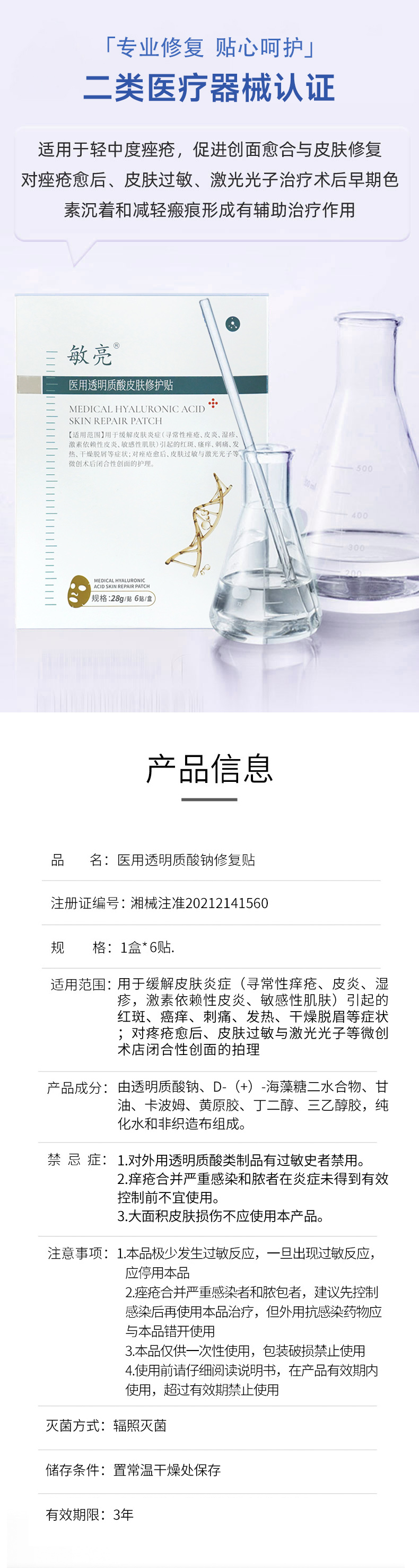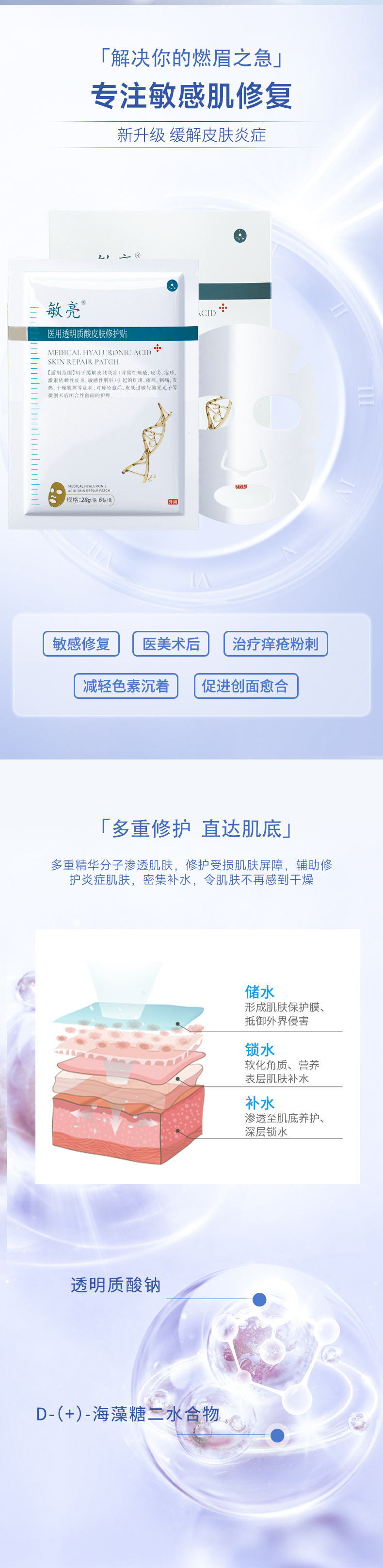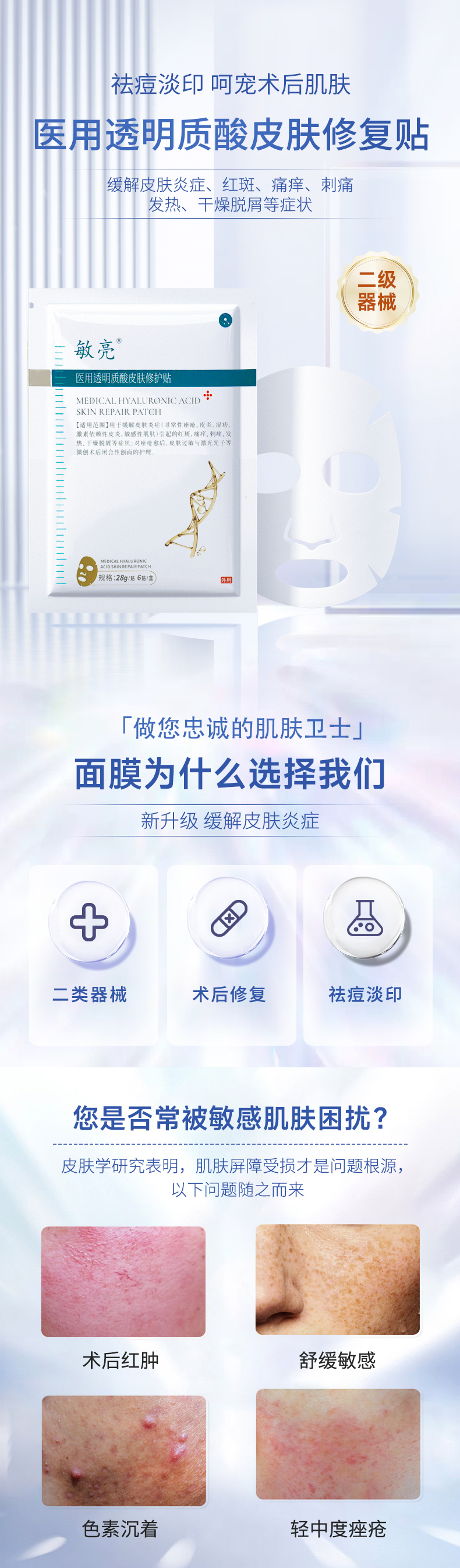 敏亮 医用透明质酸皮肤修护贴面膜6贴/盒