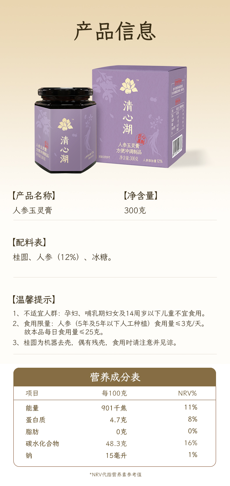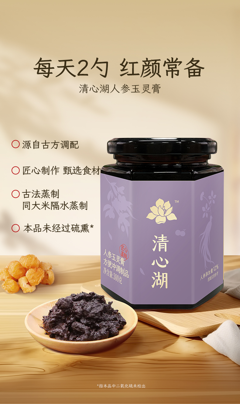 【清心湖】人参玉灵膏 配料干净滋补养生膏 温和不上火 不额外加一滴水 遵循古方蒸制 膏体黑亮浓稠 喝出好气色 干吃泡水养生好方便