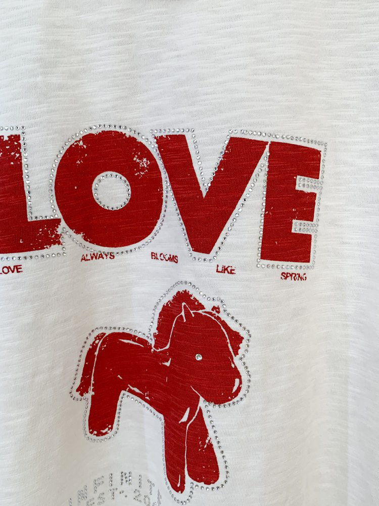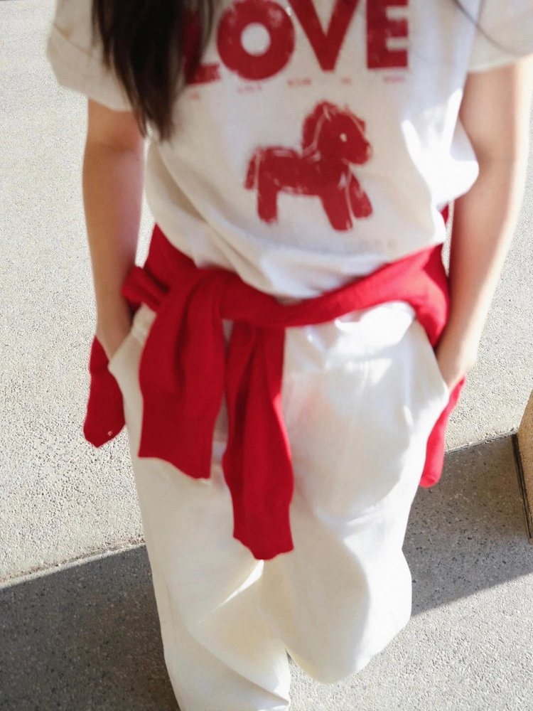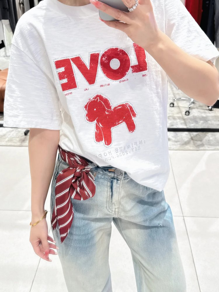 把"爱与希望"穿在身上,生肖马年系列T恤,烫钻镶边让小马活灵活现,LOVE爱与INFINITE HOPE无限希望,用穿搭为新一年正能量赋能。原身直出下摆,扎进下装/单穿都平整有型。
