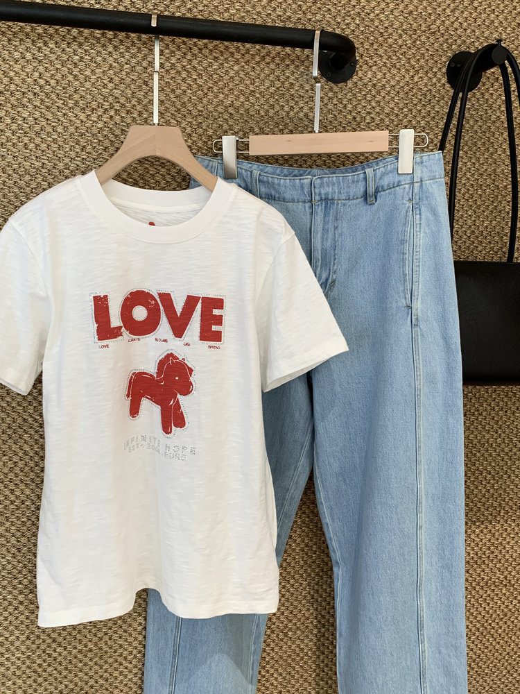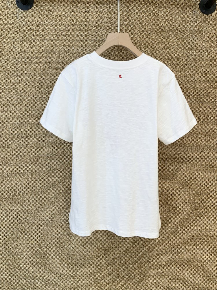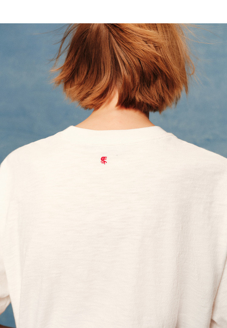 烫钻印花竹节棉白色小马T恤 生肖马年系列 天然棉纱面料 微微肌理感 原身直出下摆设计 线条利落干脆 烫钻印花小马 趣味盎然 螺纹领口
