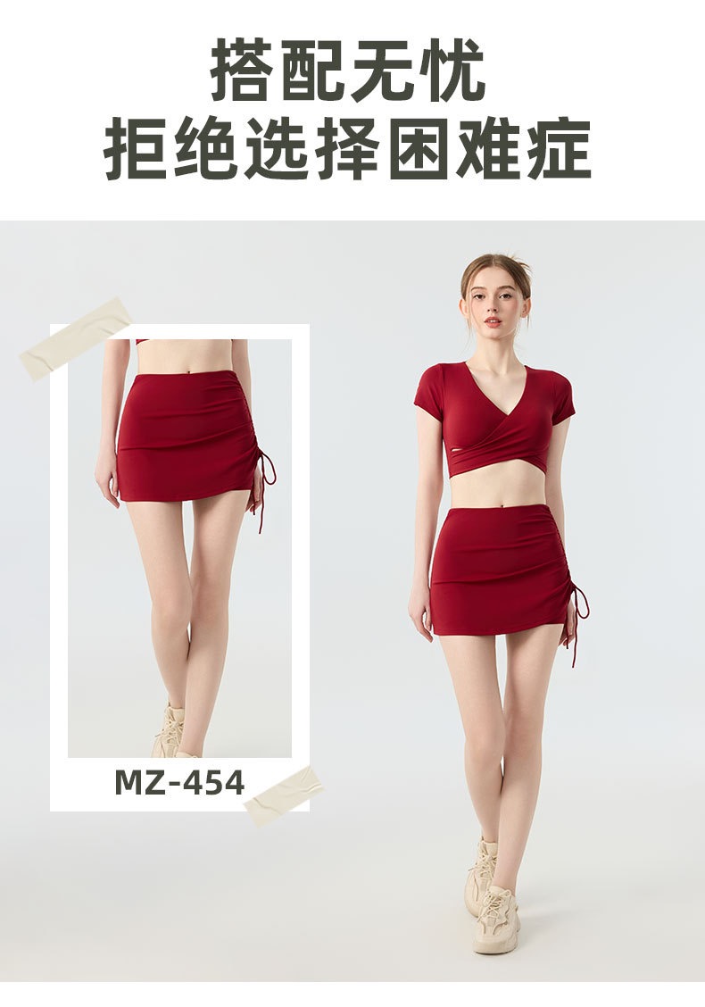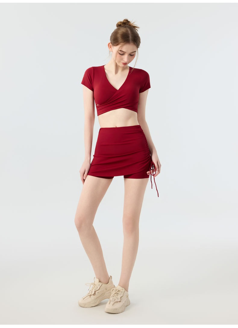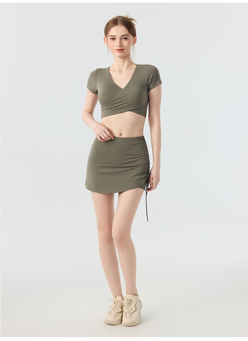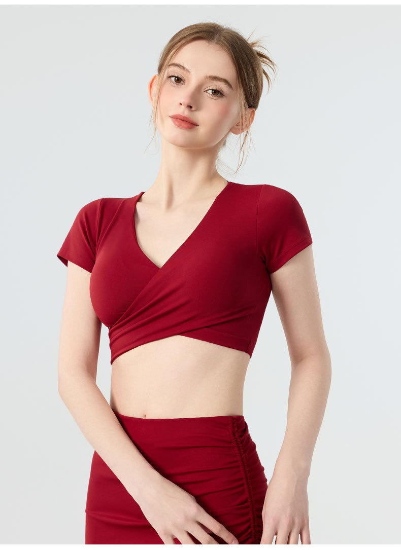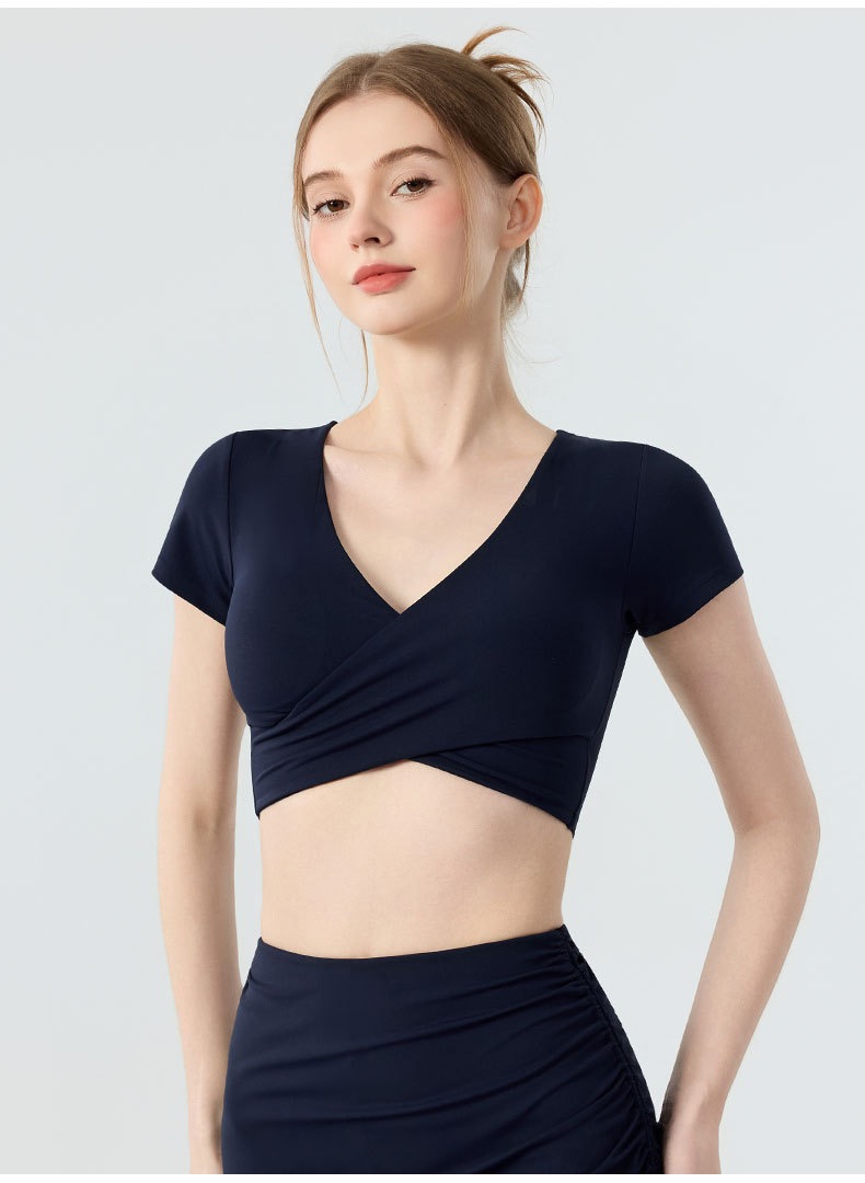 新款带胸垫v领瑜伽短袖女 外穿裸感收腹美背普拉提训练健身上衣瑜伽服BMMZ443