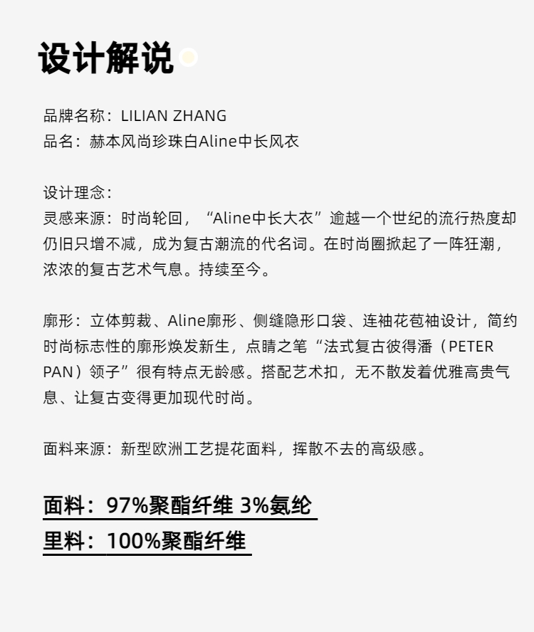 E-定制 ——“时尚轮回”——赫本风尚——珍珠白Aline中长风衣 2407006