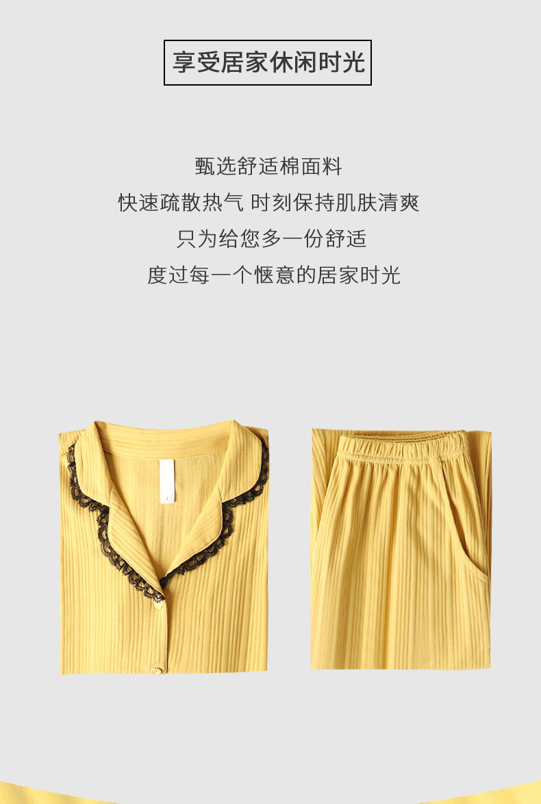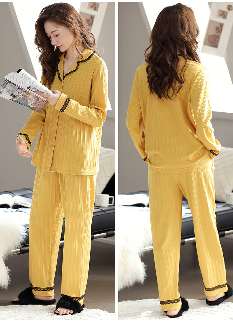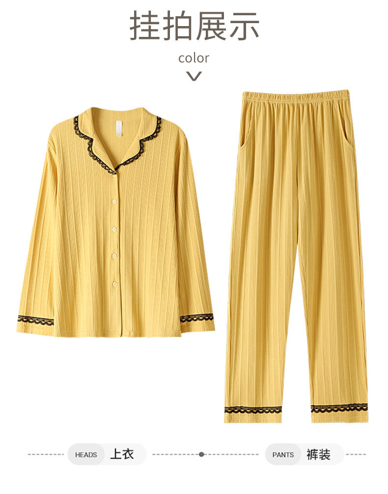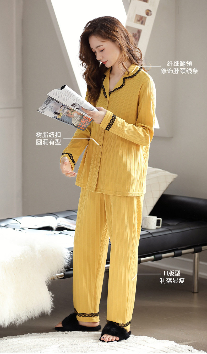 秋季纯棉睡衣女士开衫长袖长裤套装秋天简约休闲青年户外家居服   JL-LGA2739 商品图3