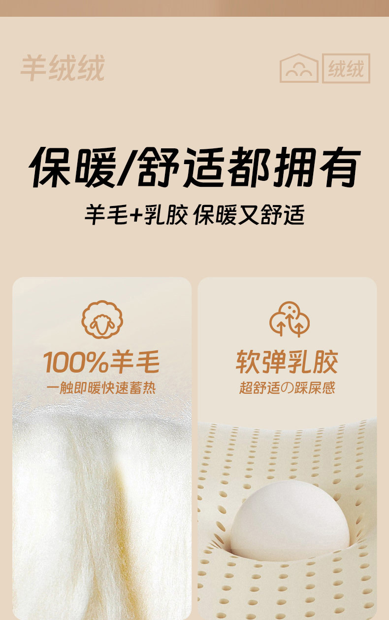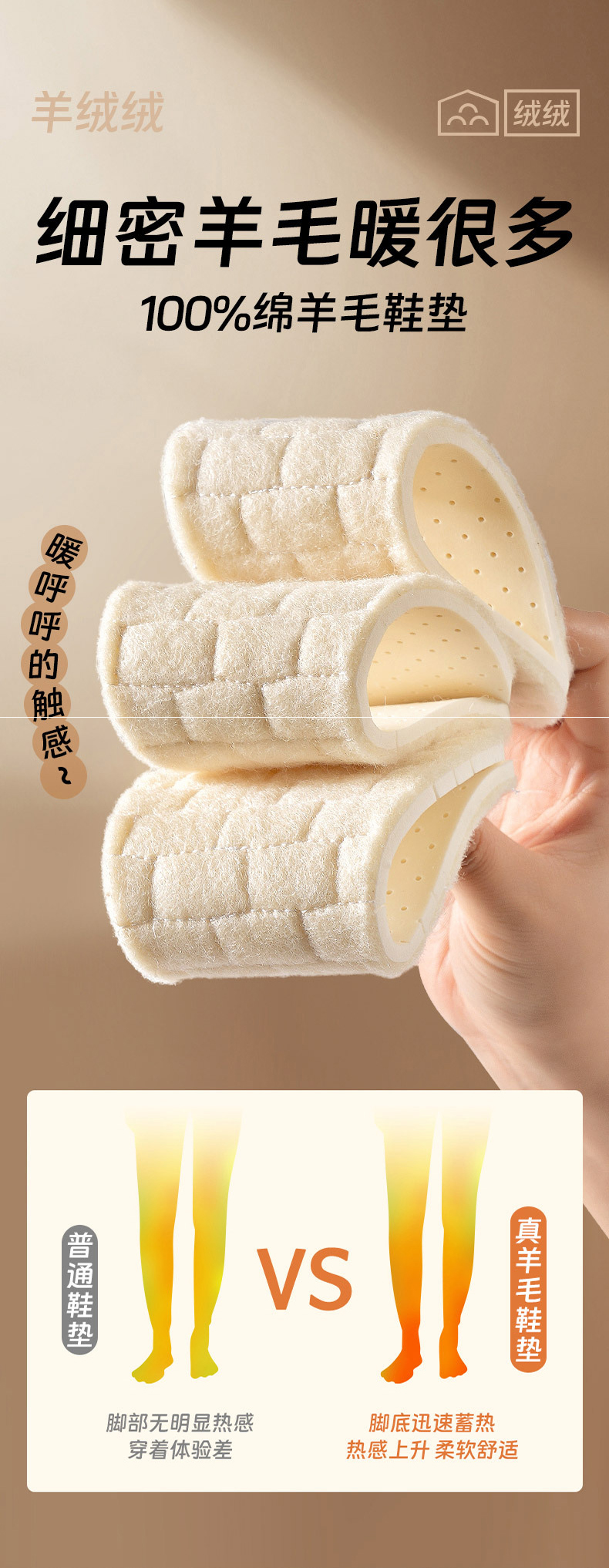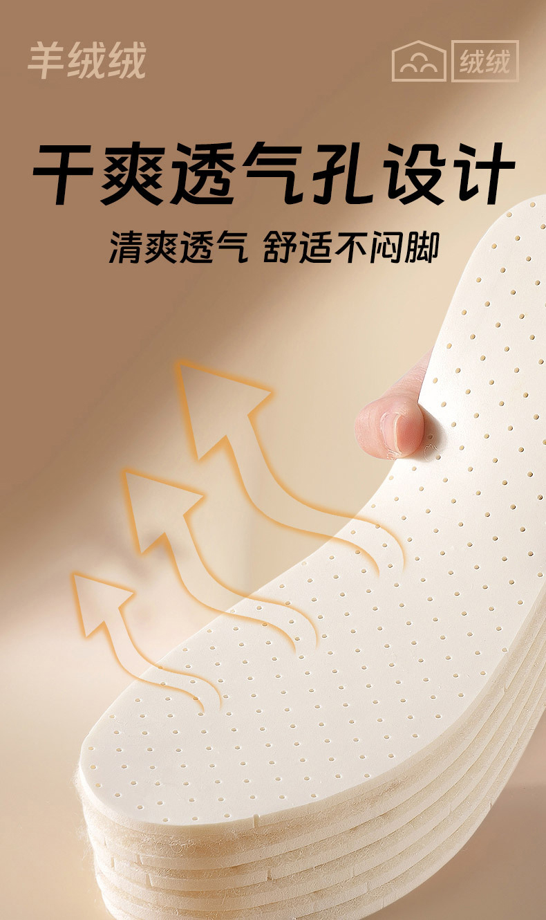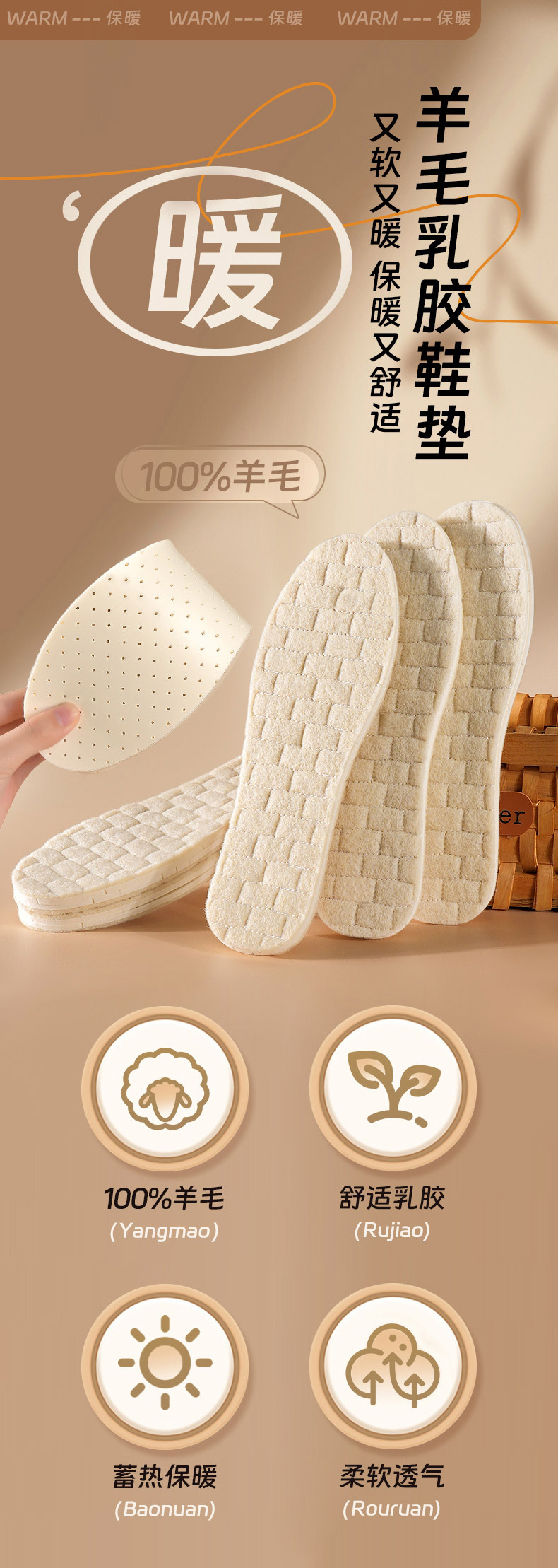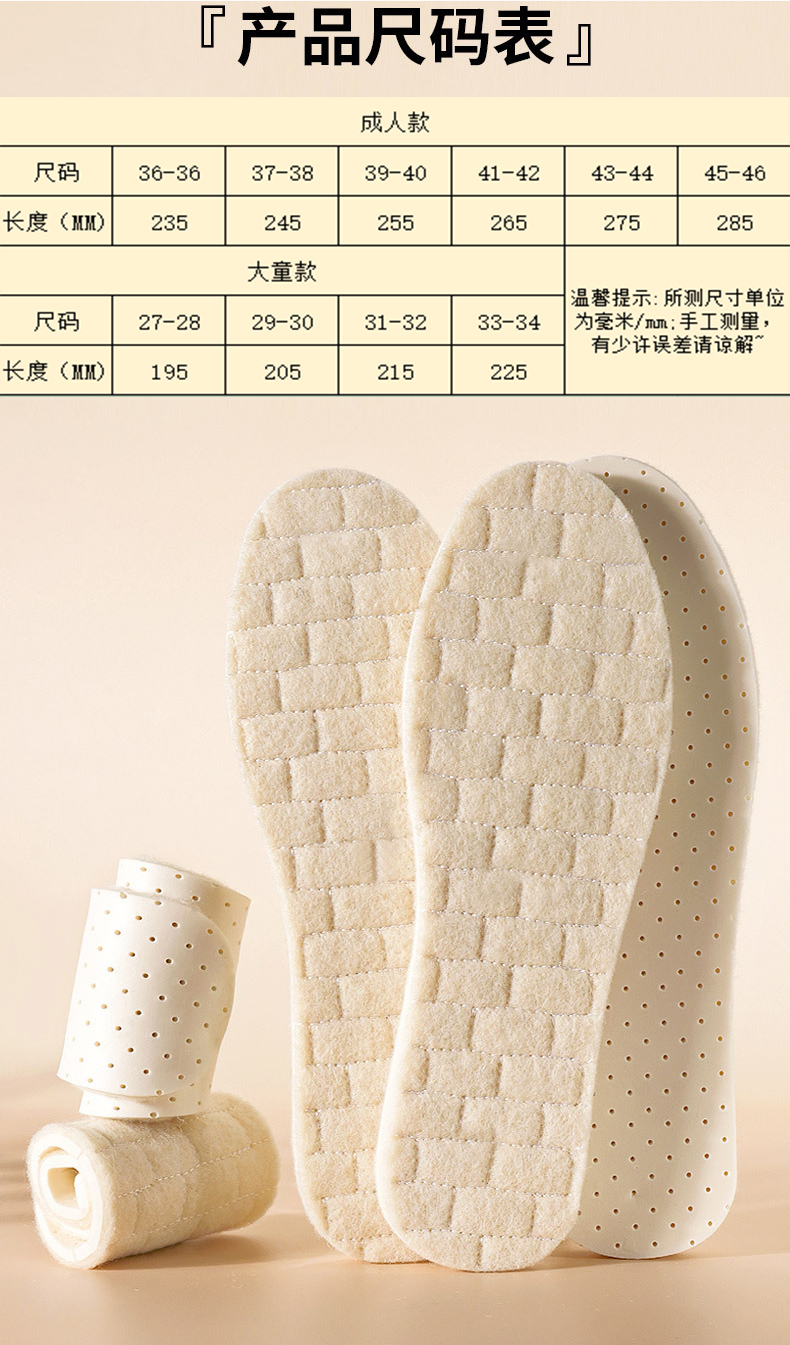 【不同尺码请备注】羊毛乳胶保暖防臭鞋垫,天然乳胶防脚气 保暖吸汗底部透气孔设计 ,慢回弹缓解脚部压力 儿童款成人款可裁剪