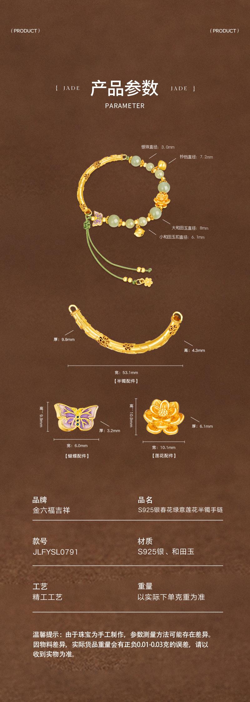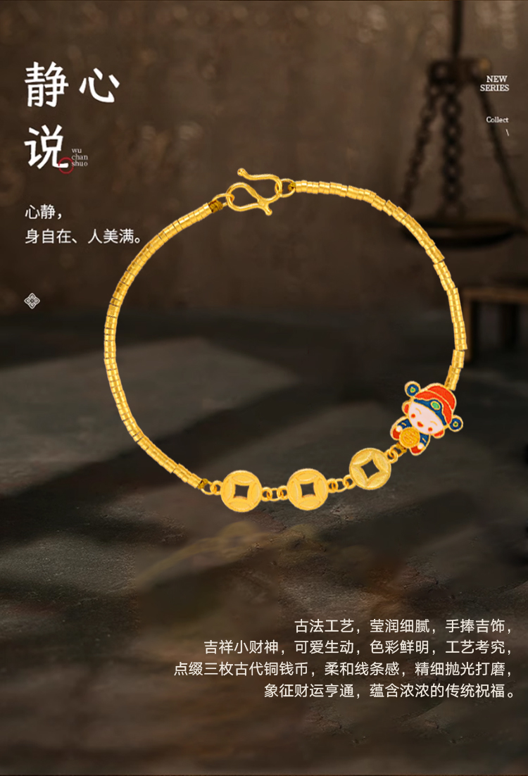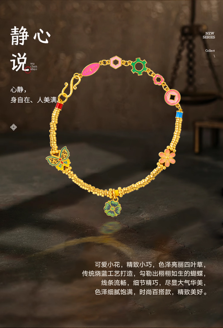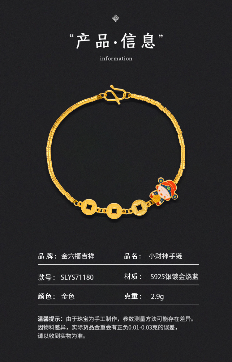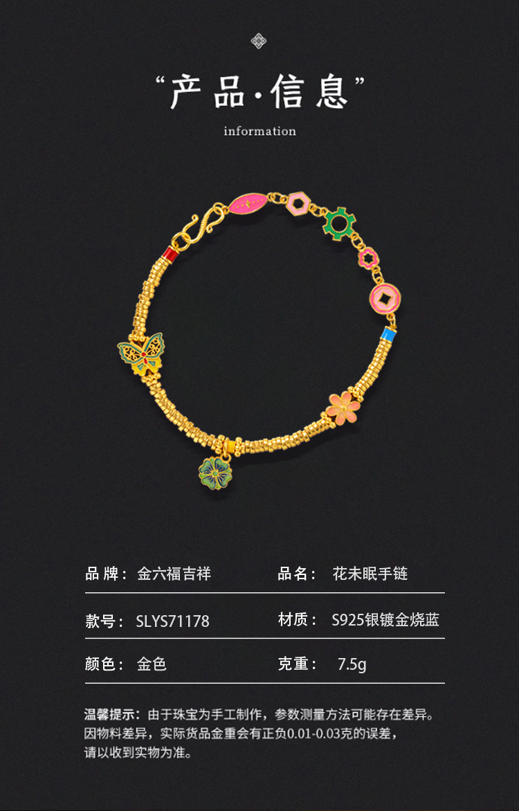 【花韵芬芳 岁月静好】金六福吉祥 S925银项链手链戒指系列