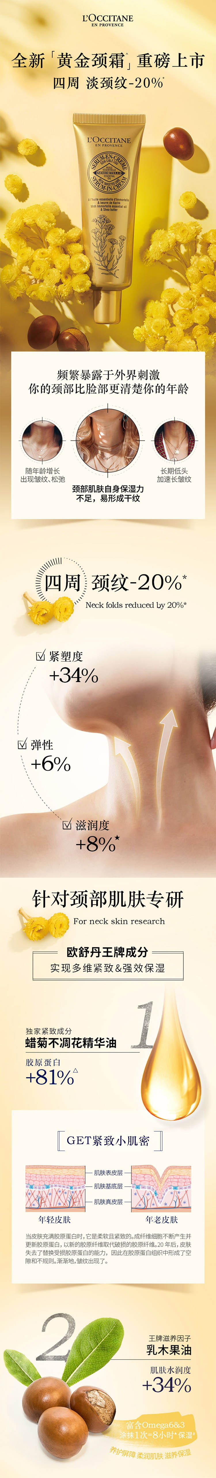 【精选包邮】正品欧舒丹50ml 黄金颈部霜 蜡菊精华保湿滋润淡化干纹#