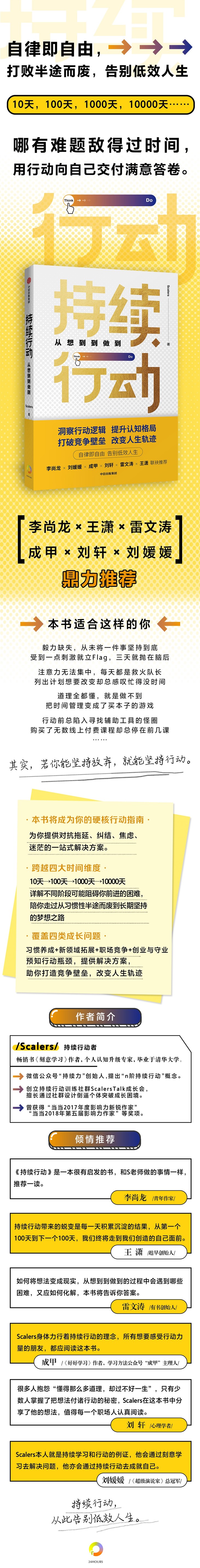 如果你是第一次看到这位名叫Scalers的作者的作品,并对“持续行动”这个话题感兴趣,那么我要感谢这段相识的缘分。我相信,不管你处在人生的哪个阶段,本书都可以给你一些不同的视角,甚至重要的启发。
