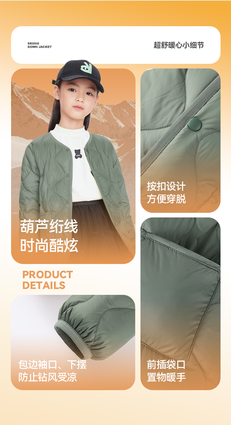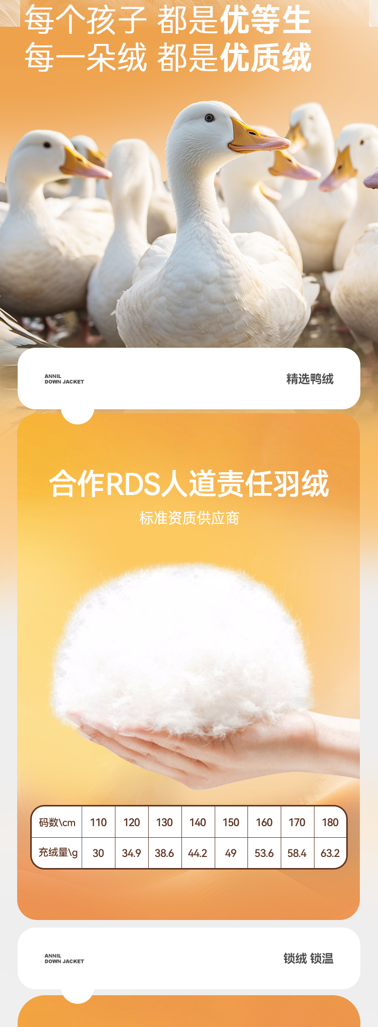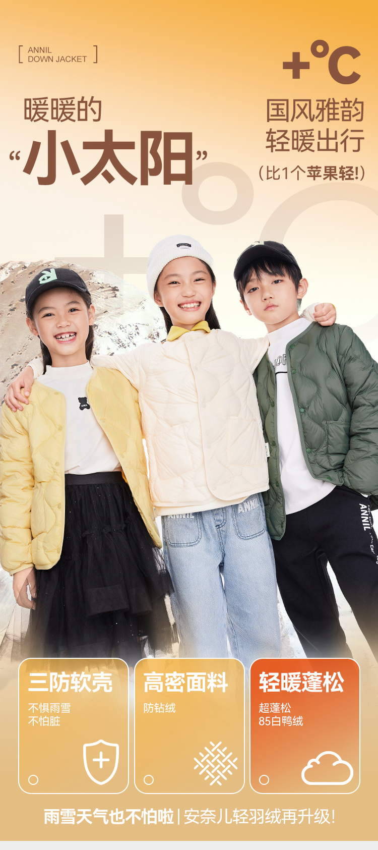 【校服内胆神器】男女童亲子装轻薄锁绒保暖短款羽绒服安奈儿ANNIL冬季新款EM445502
