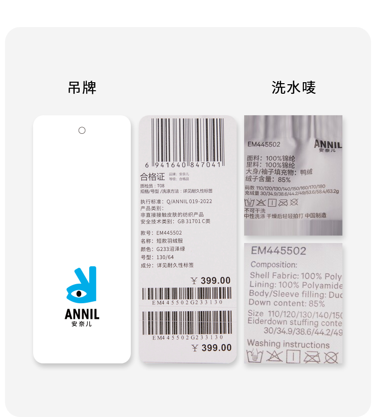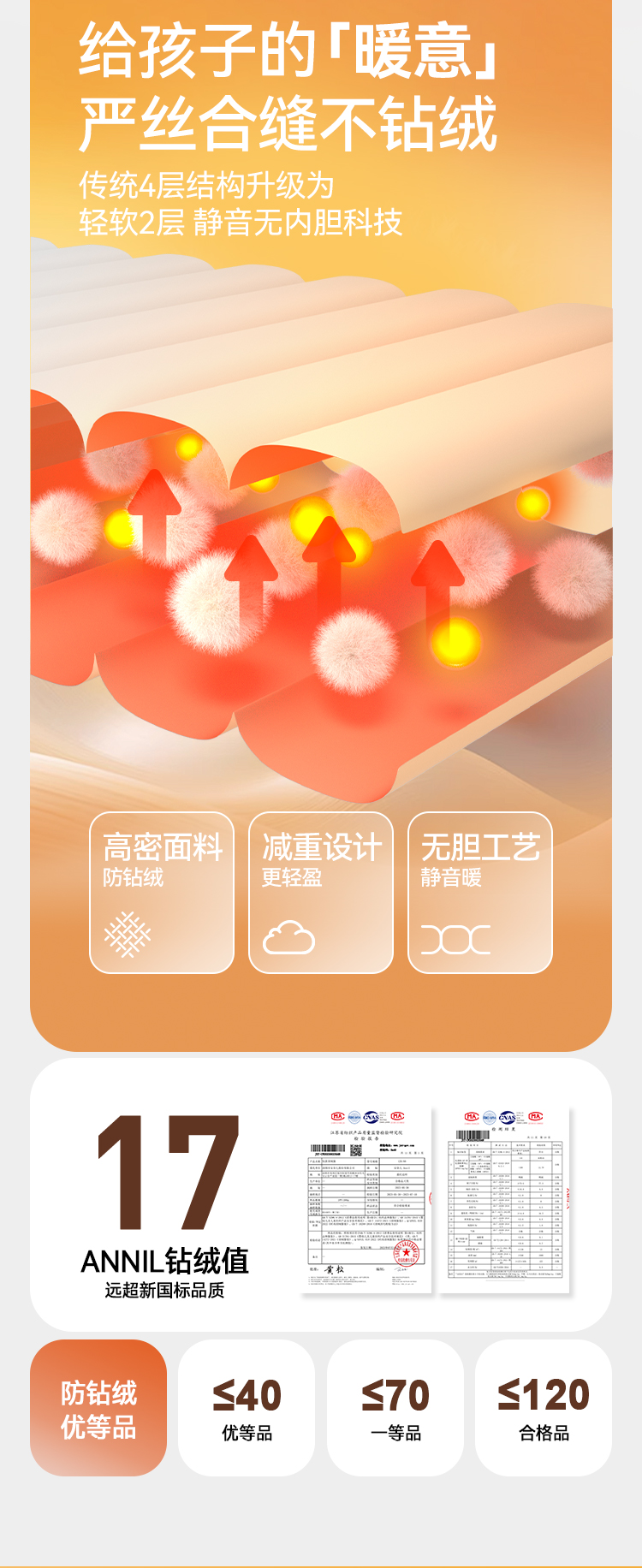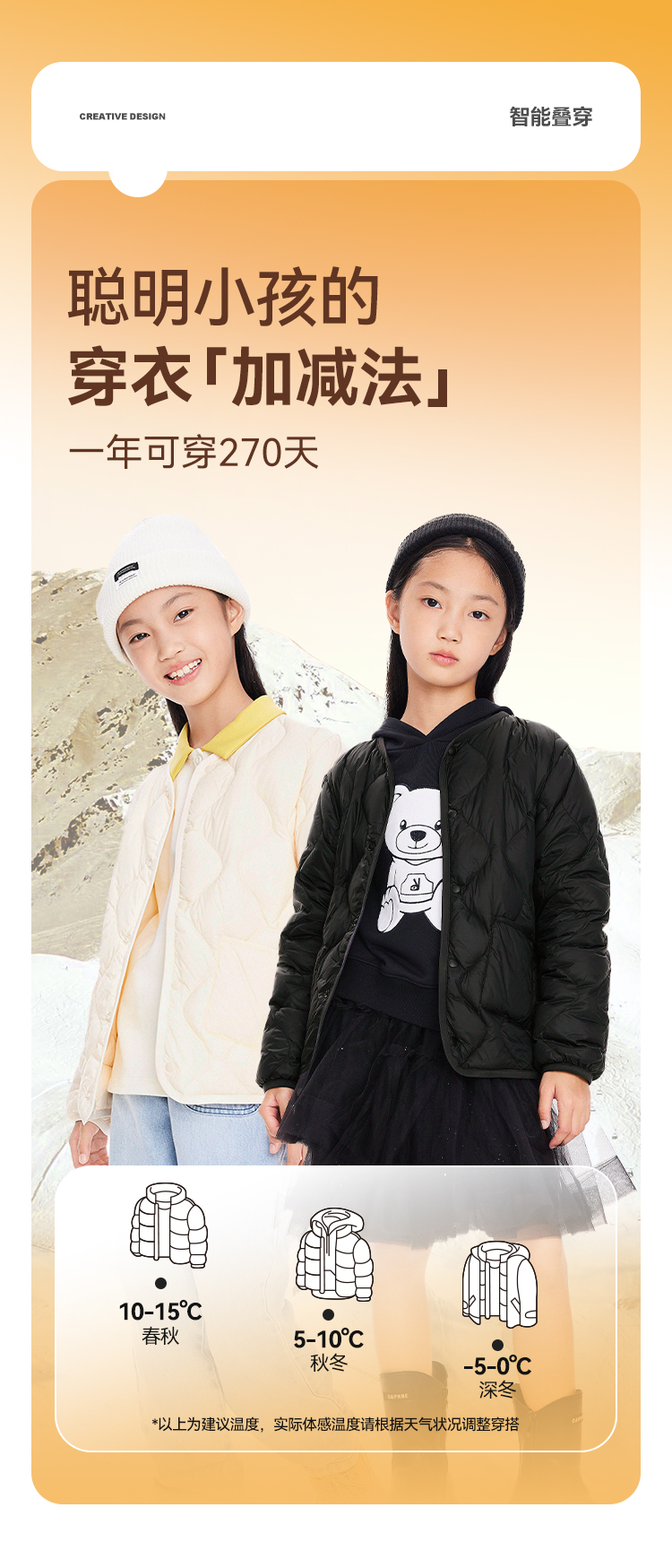 【校服内胆神器】男女童亲子装轻薄锁绒保暖短款羽绒服安奈儿ANNIL冬季新款EM445502