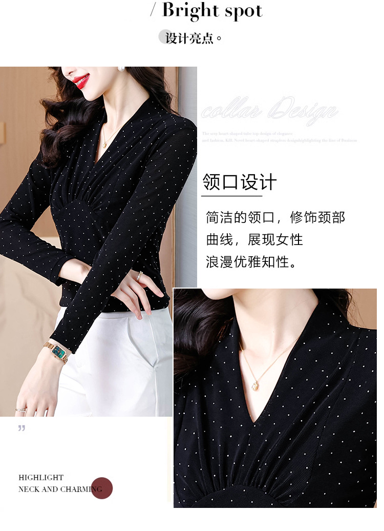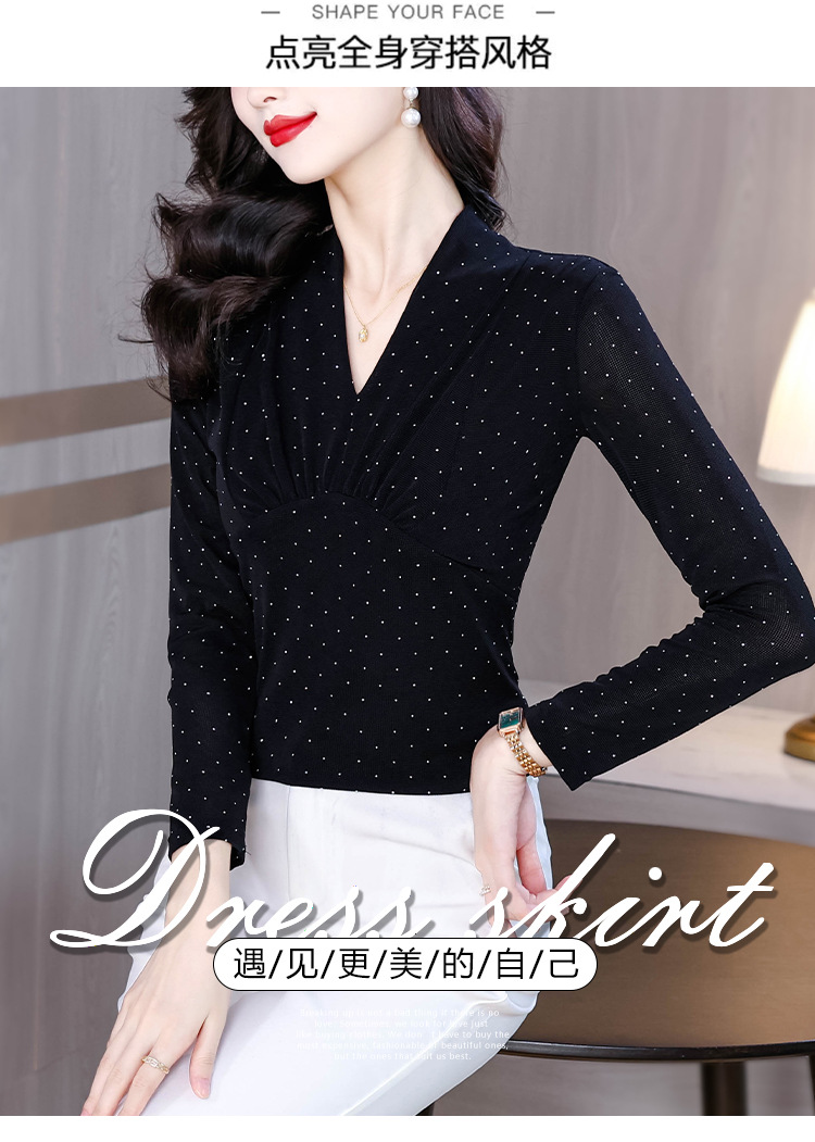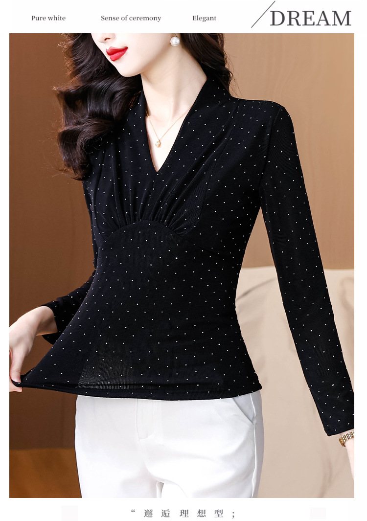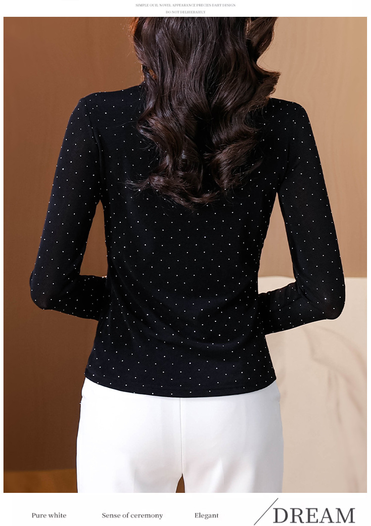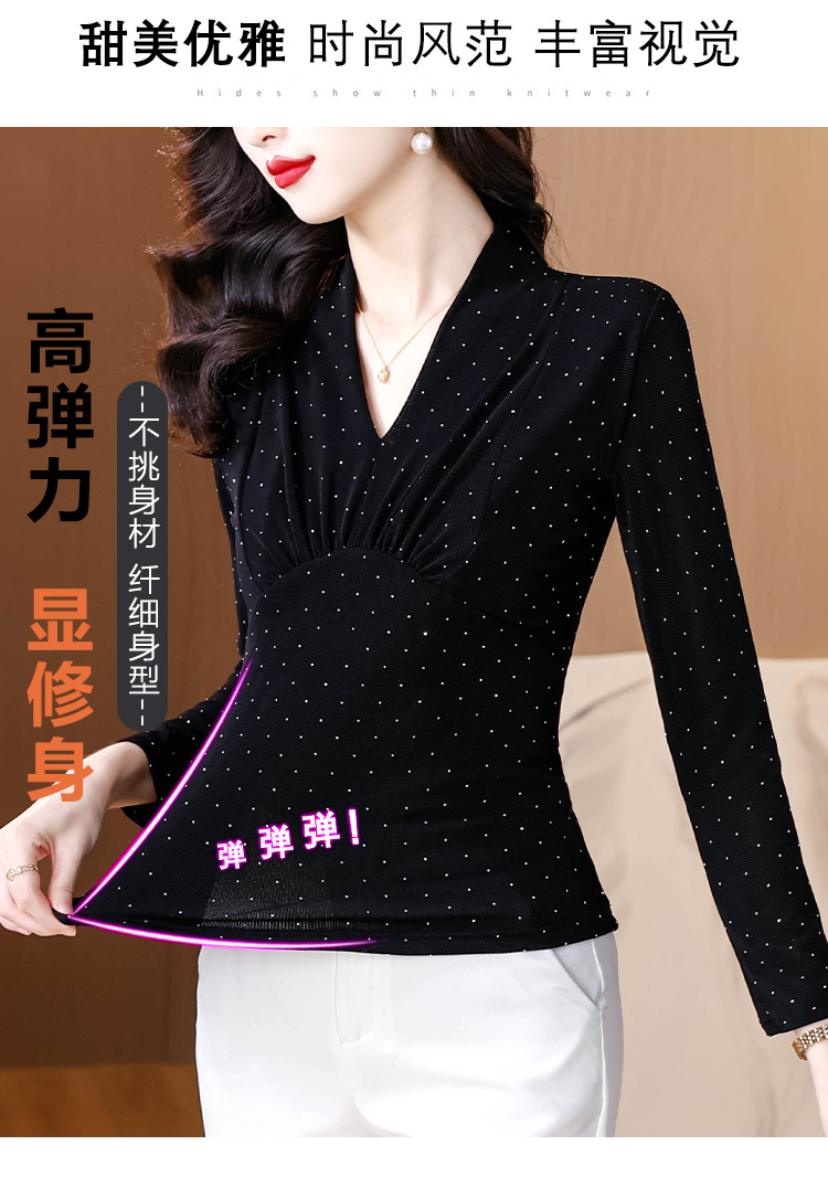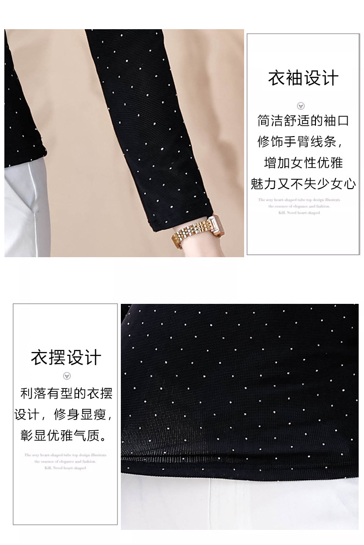 KQL C302N1697时尚烫金蕾丝网纱洋气修身显瘦打底衫简约纯色