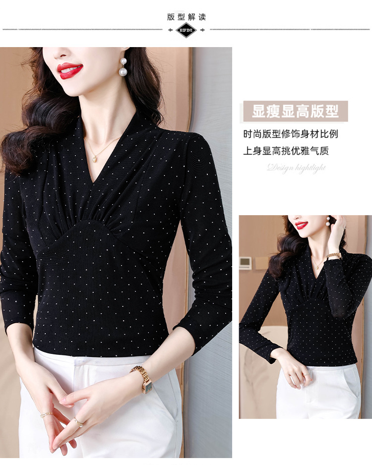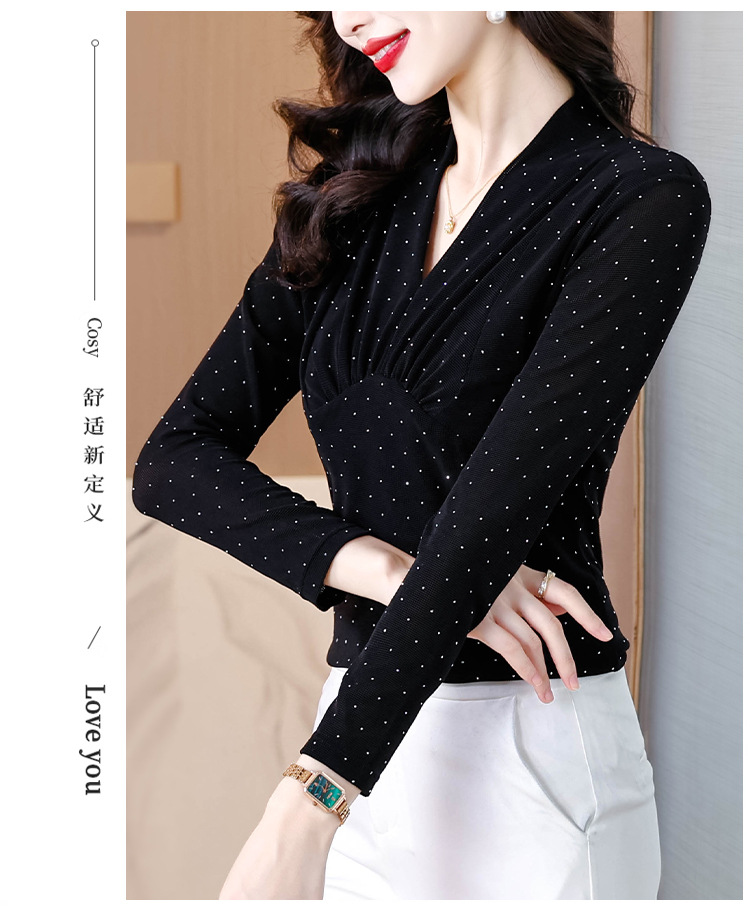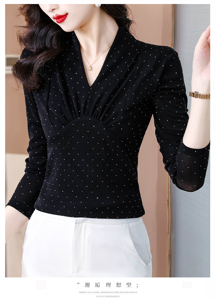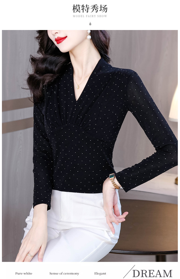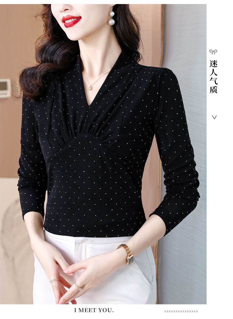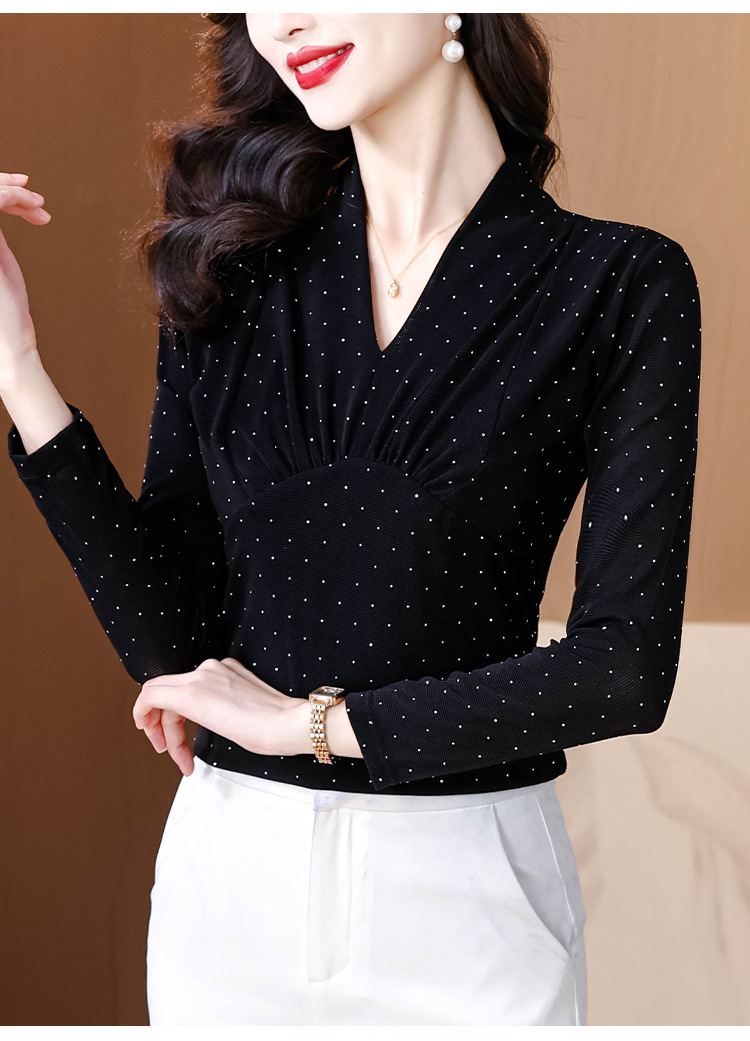 KQL C302N1697时尚烫金蕾丝网纱洋气修身显瘦打底衫简约纯色