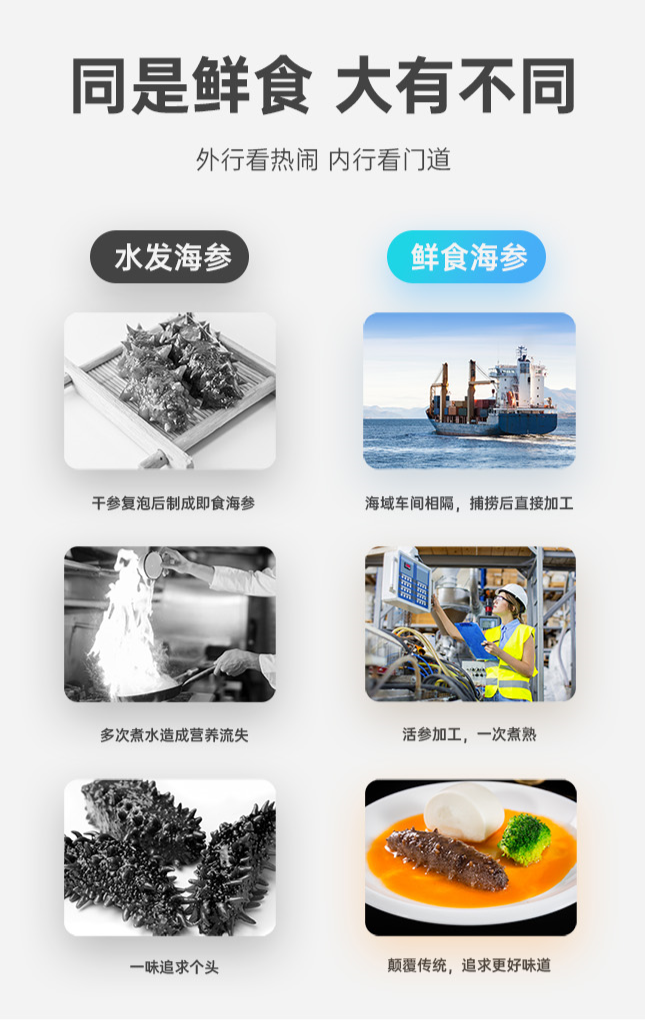 即食海参 | 土耳其爱琴海自然散养8-12头米刺参制作 5年上参龄 粗壮饱满 刺刺分明 肉筋完整 颜色黑褐 营养丰富低温熟化技术制作 开袋即食 吃法多样