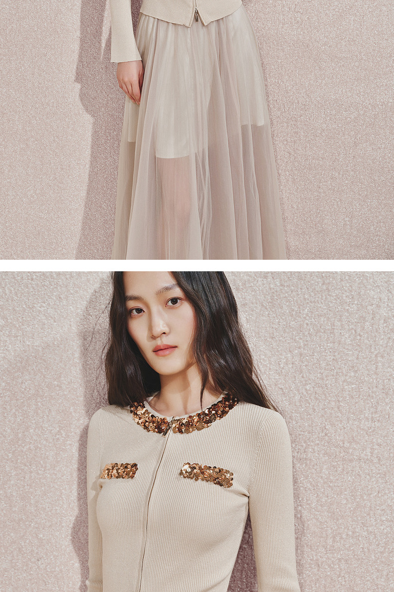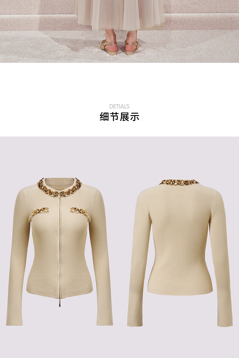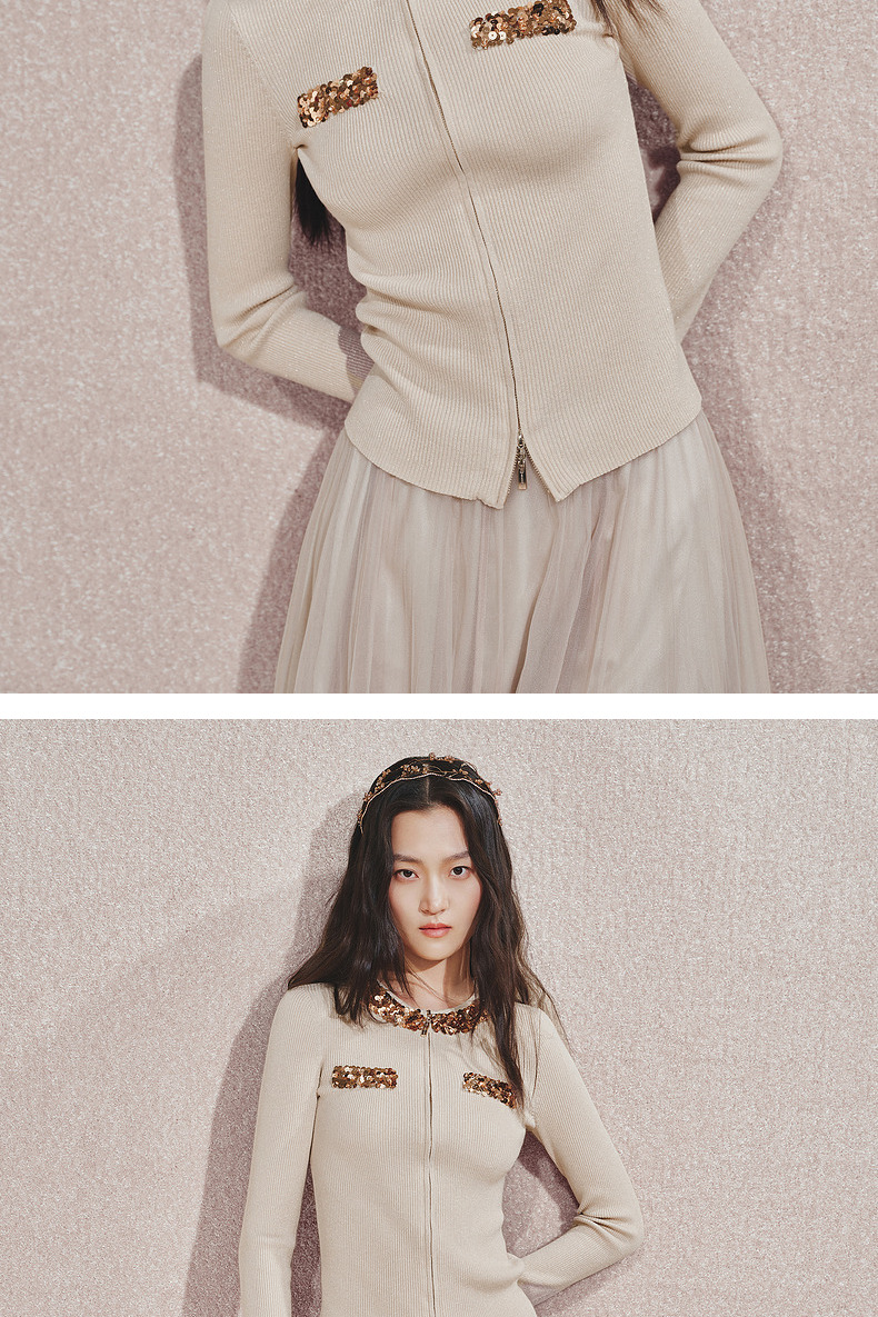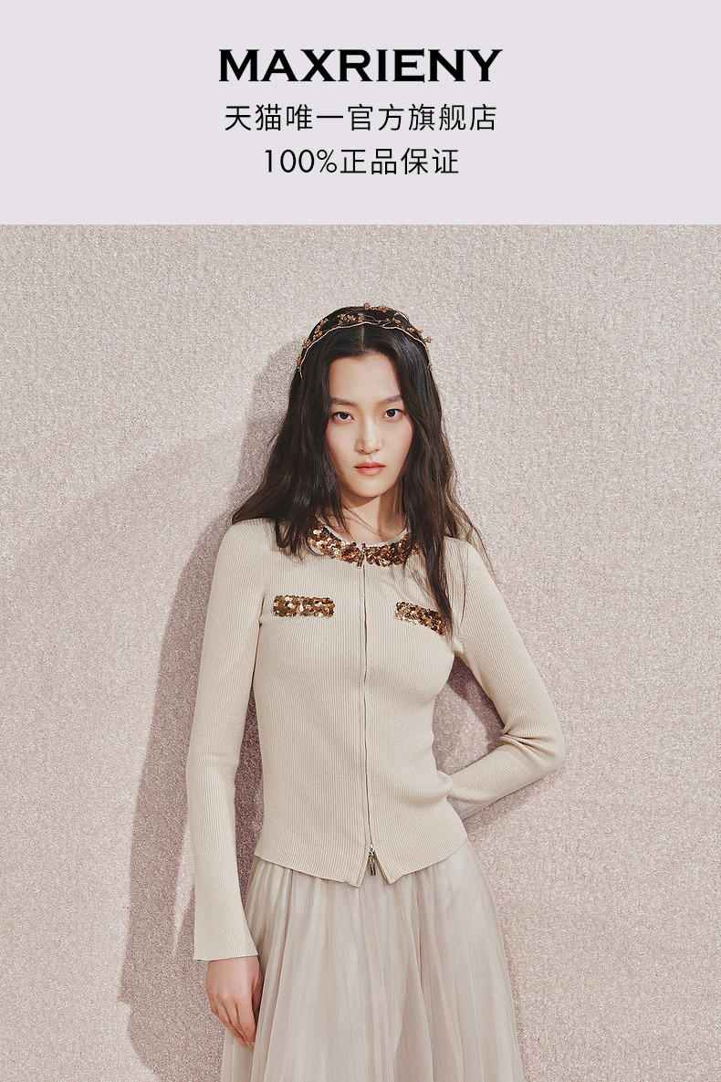 【宫廷巴洛克-商场同款】MAXRIENY亮片装饰针织衫女修身显瘦24秋(货号:MC85SW540)