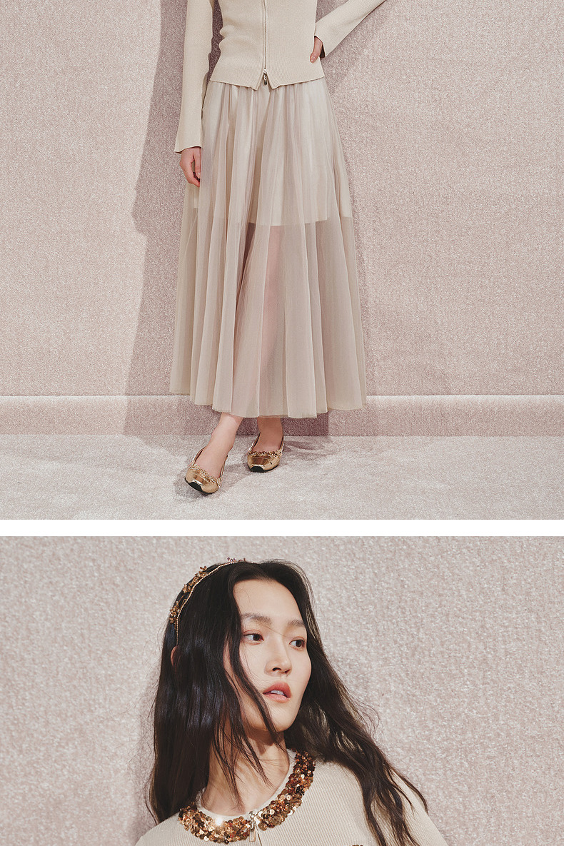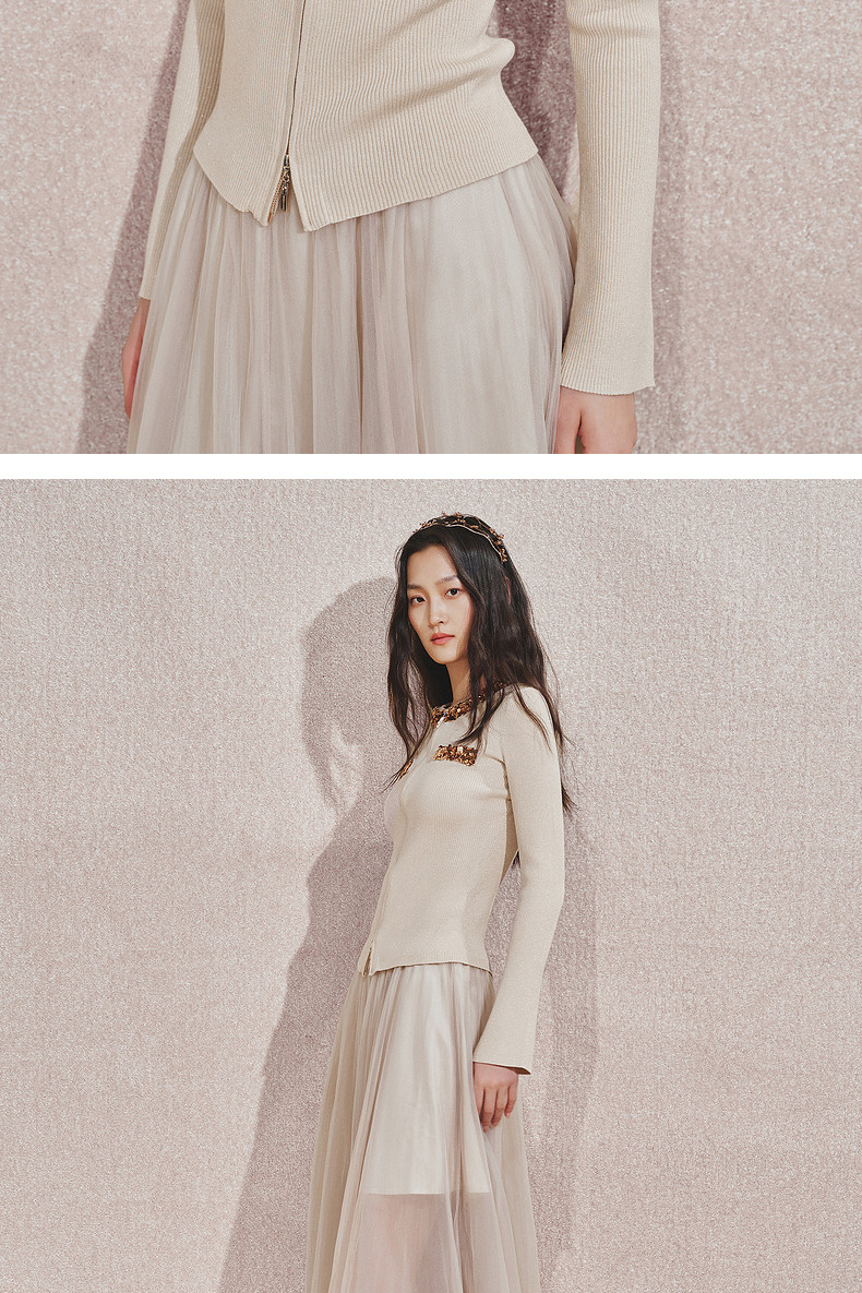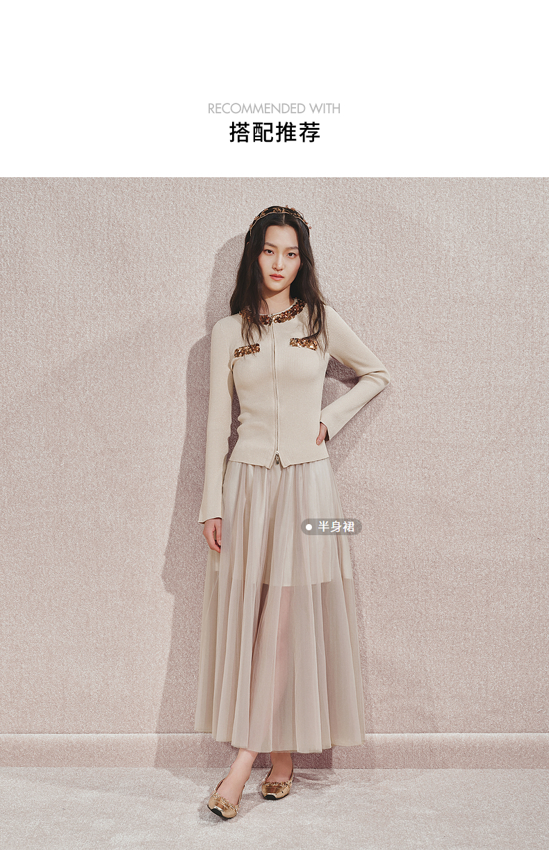 【宫廷巴洛克-商场同款】MAXRIENY亮片装饰针织衫女修身显瘦24秋(货号:MC85SW540)