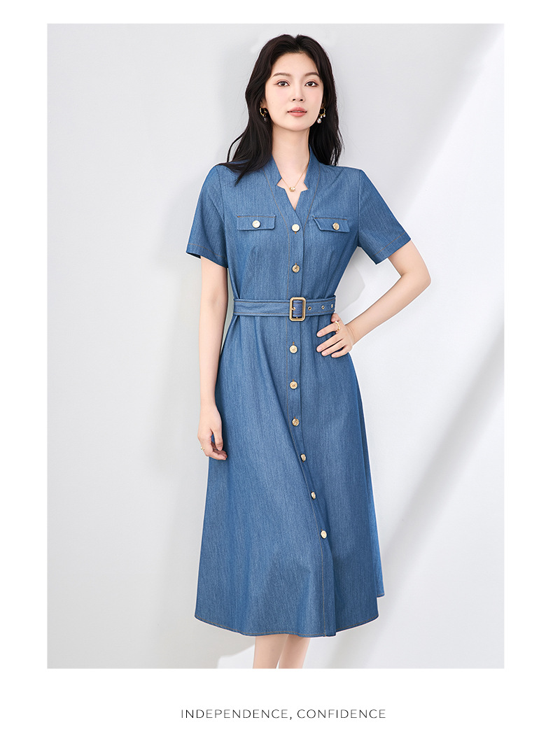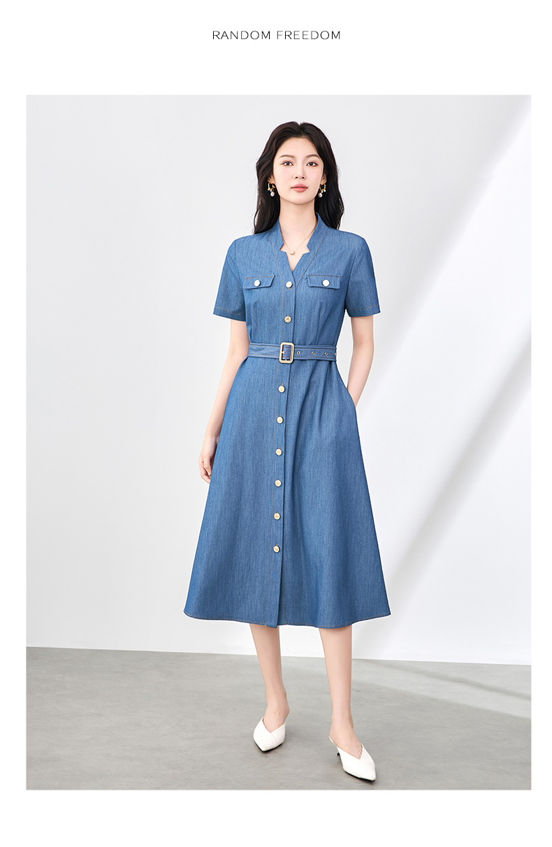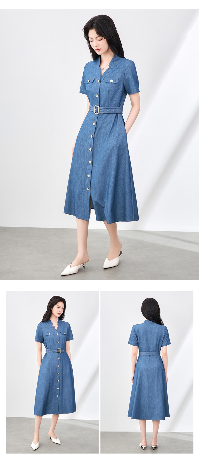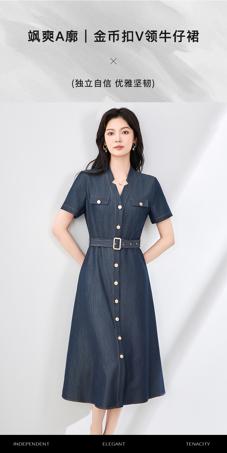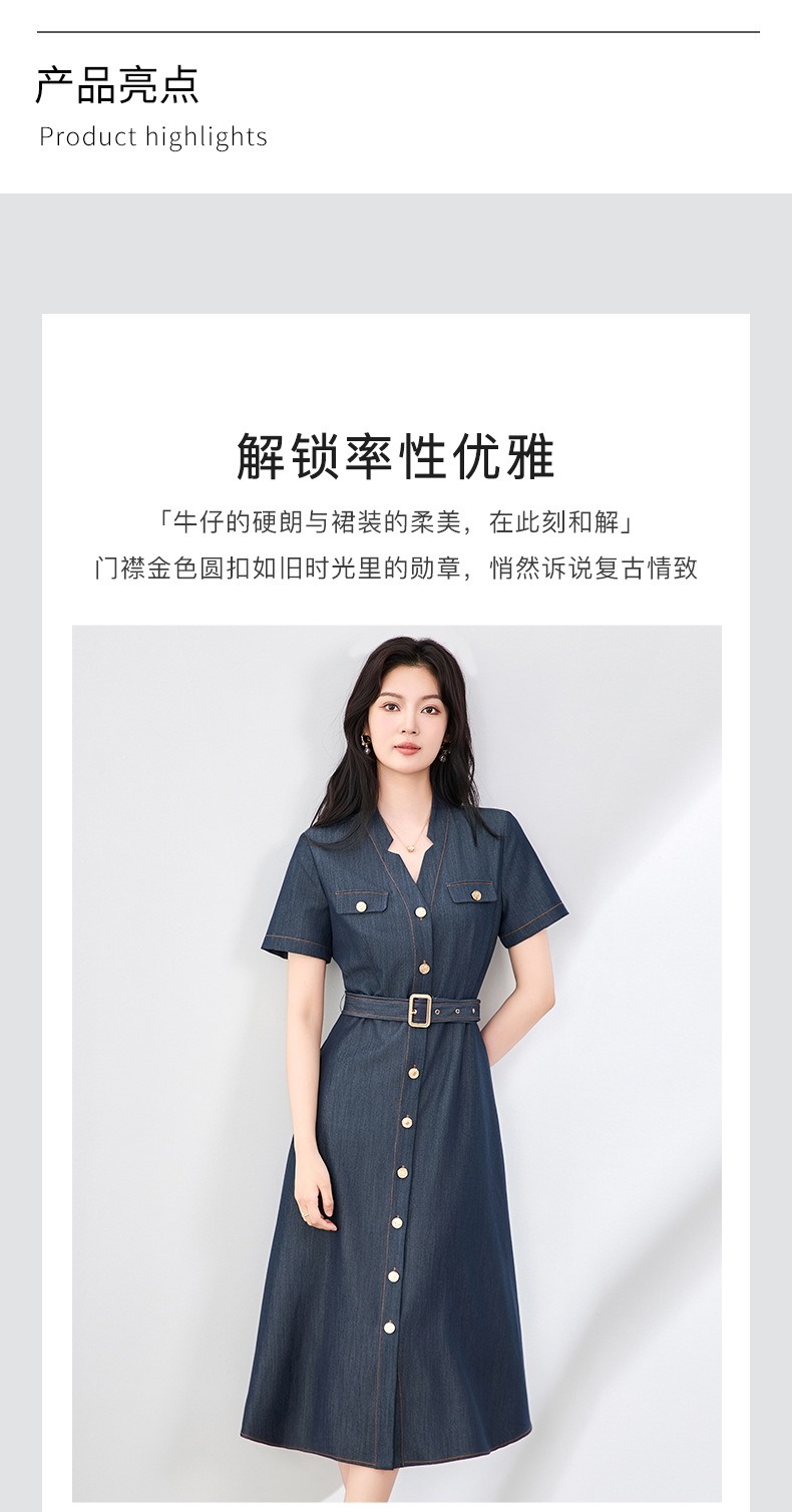 「高货wl」全新升级【铂金会员358/天猫479/差价121】(13551)洛诗琳简约摩登衬衫连衣裙2025夏季新款收腰显瘦牛仔裙