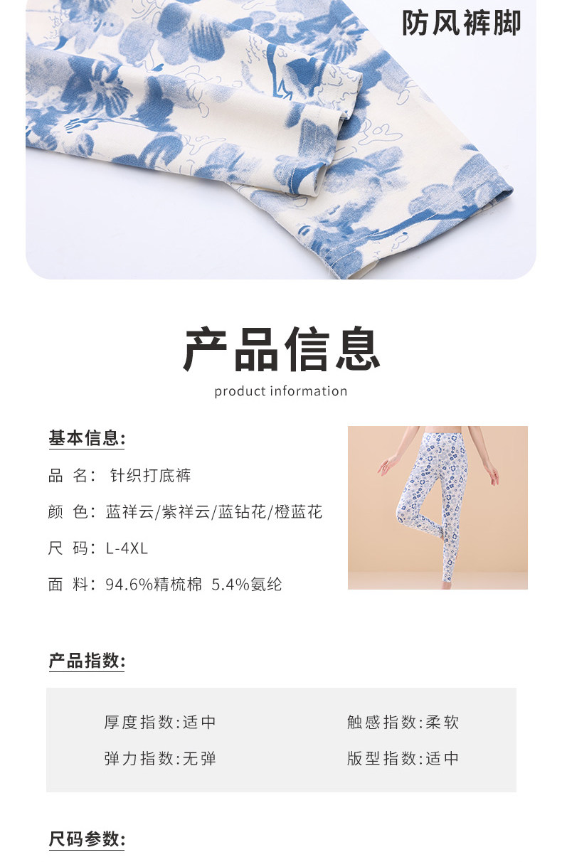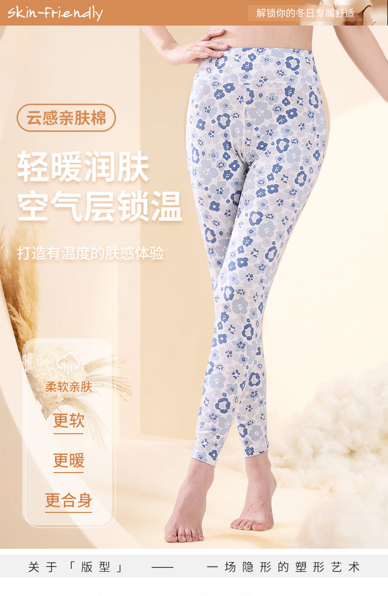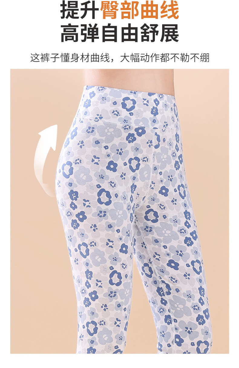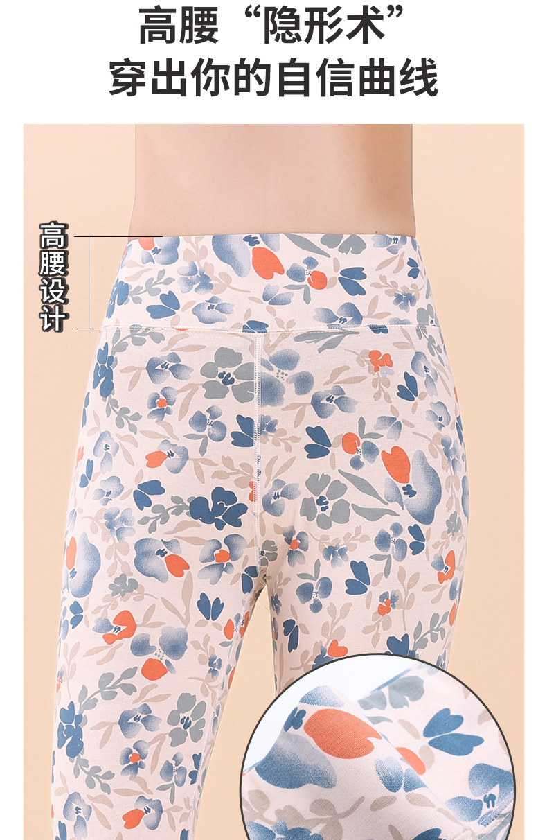 恒源祥舒适棉95%吸湿透气女士薄款秋冬保暖裤碎花妈妈针织秋裤