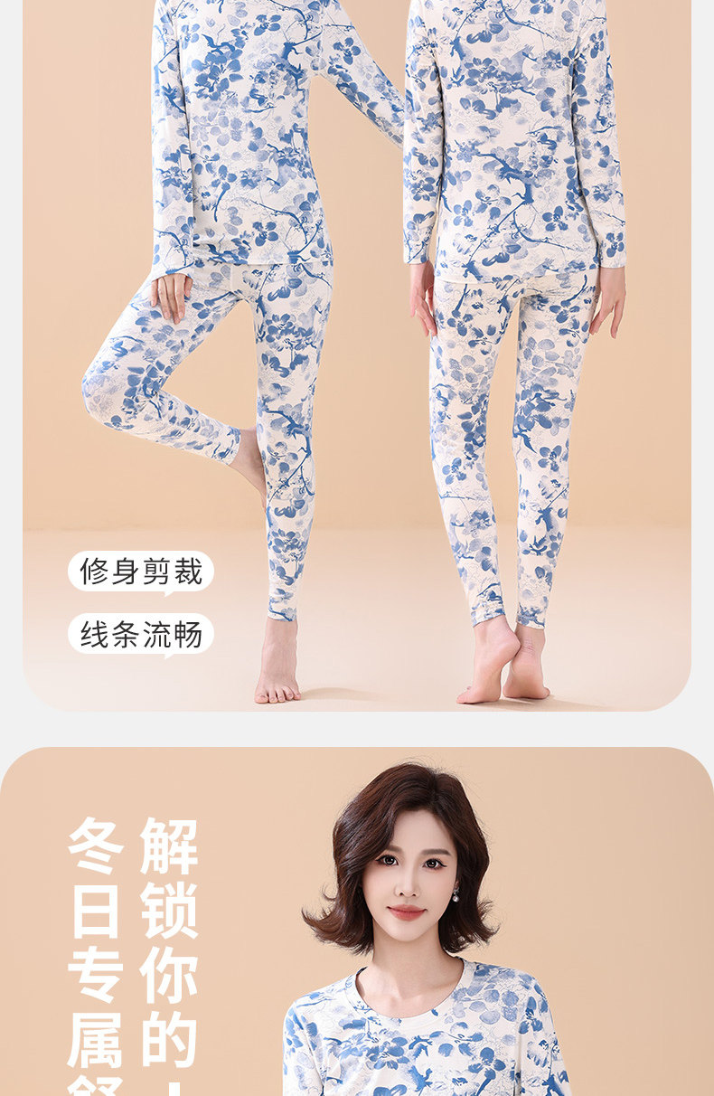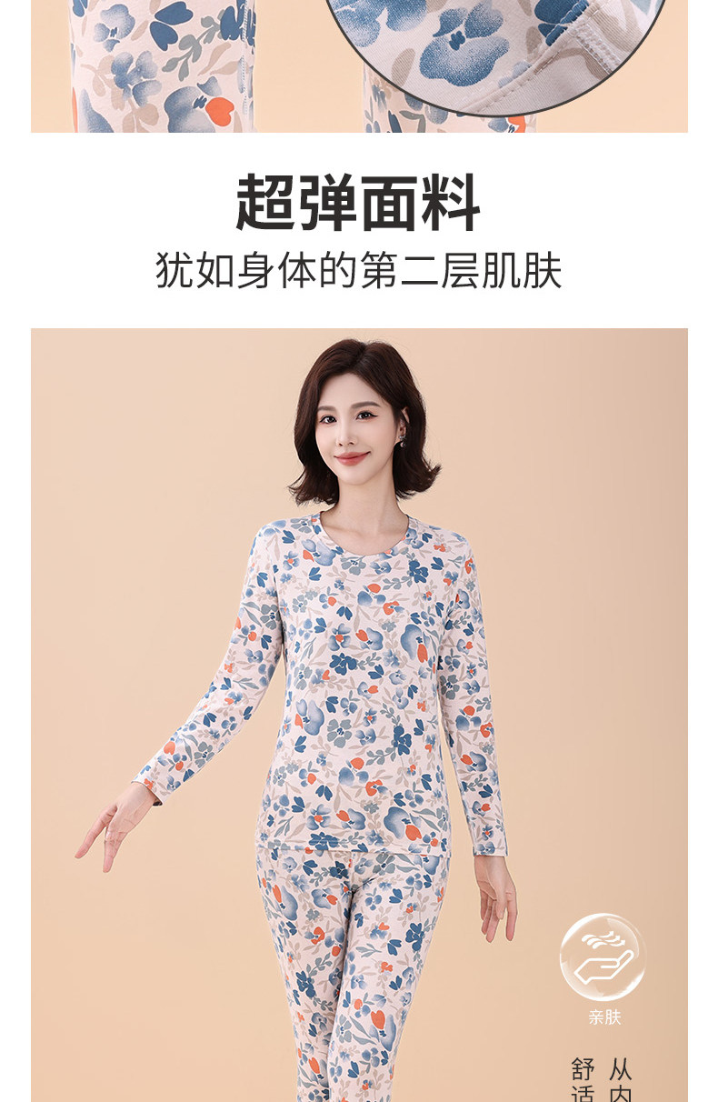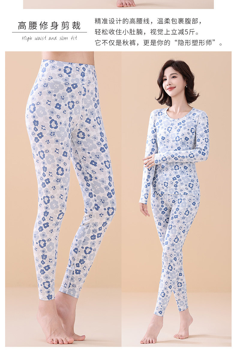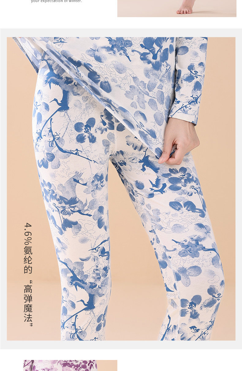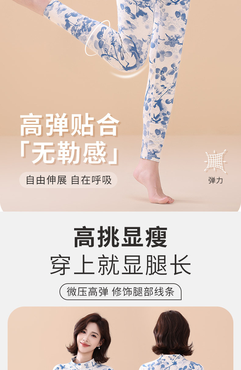 恒源祥舒适棉95%吸湿透气女士薄款秋冬保暖裤碎花妈妈针织秋裤