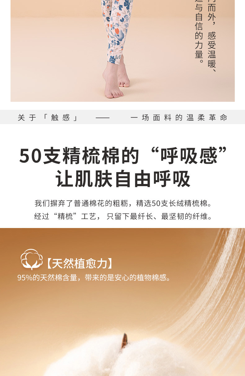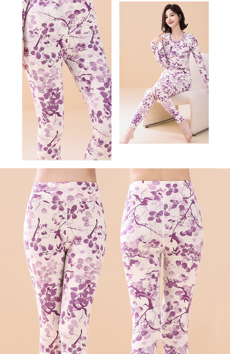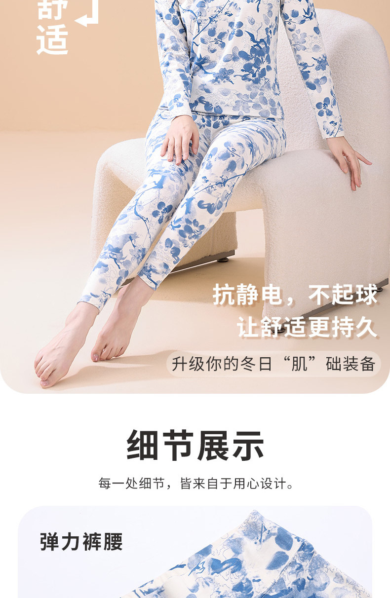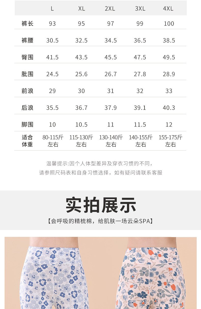 恒源祥舒适棉95%吸湿透气女士薄款秋冬保暖裤碎花妈妈针织秋裤