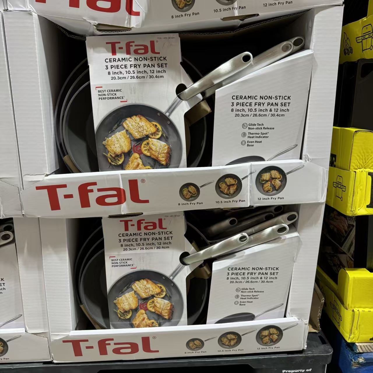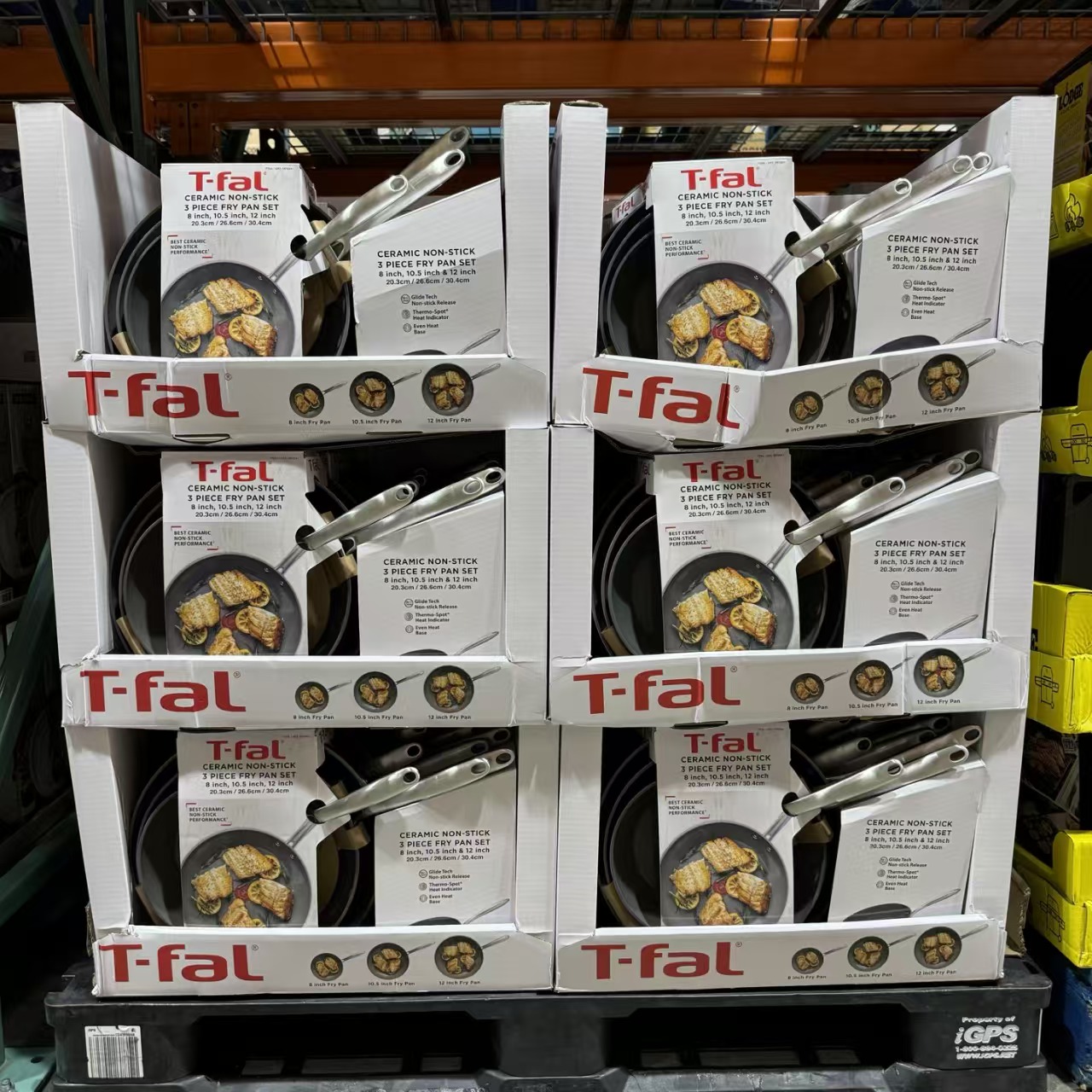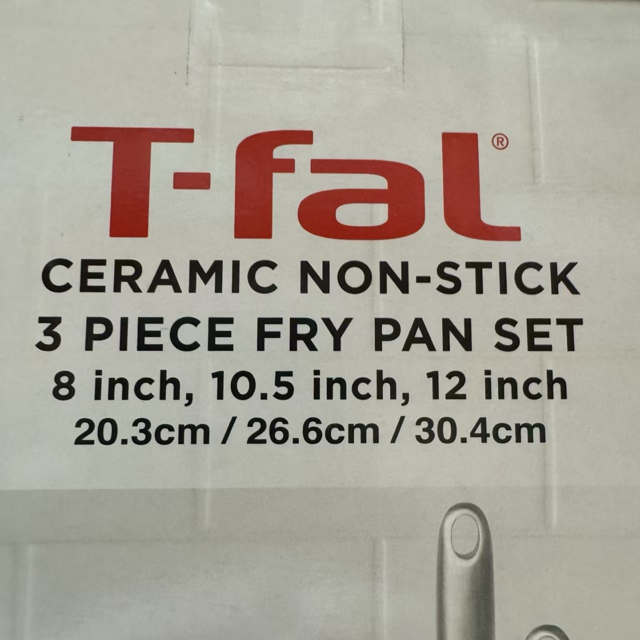到手价550元 T-FAL特福三件套平底不粘锅8in(约20.3厘米)、10.5in(约26.6厘米)12in(约30.4厘米) 美国代购,无中文标签,介意慎拍