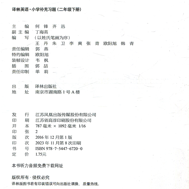 2024年春 小学英语补充习题二年级下册2下2B 译林版 教材配套习题 全新正版 不含参考答案 译林出版社(听力部分需要联系客服)