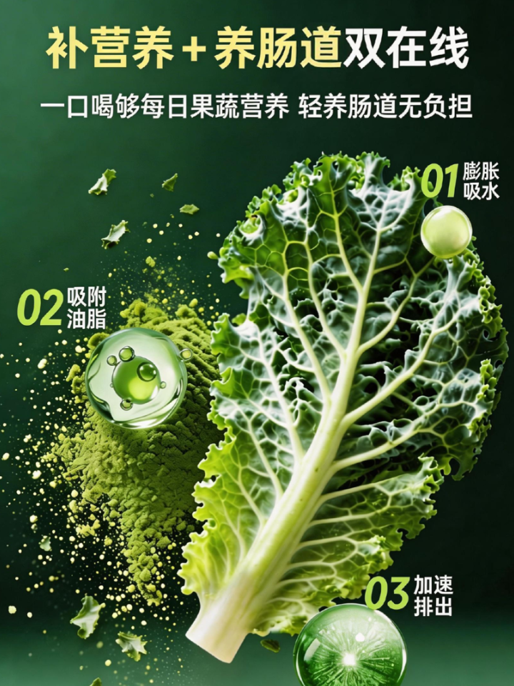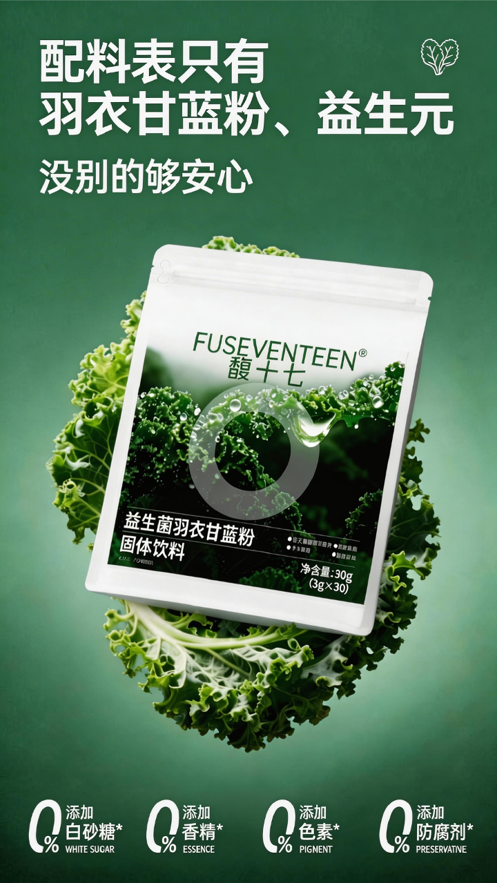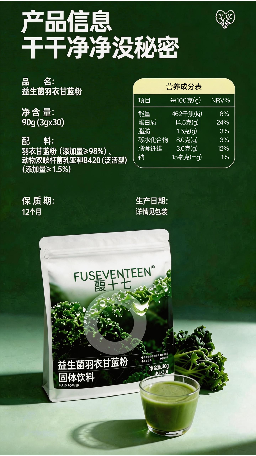 馥十七 益生菌羽衣甘蓝粉新鲜羽衣甘蓝粉含量98%【赠水杯一个】