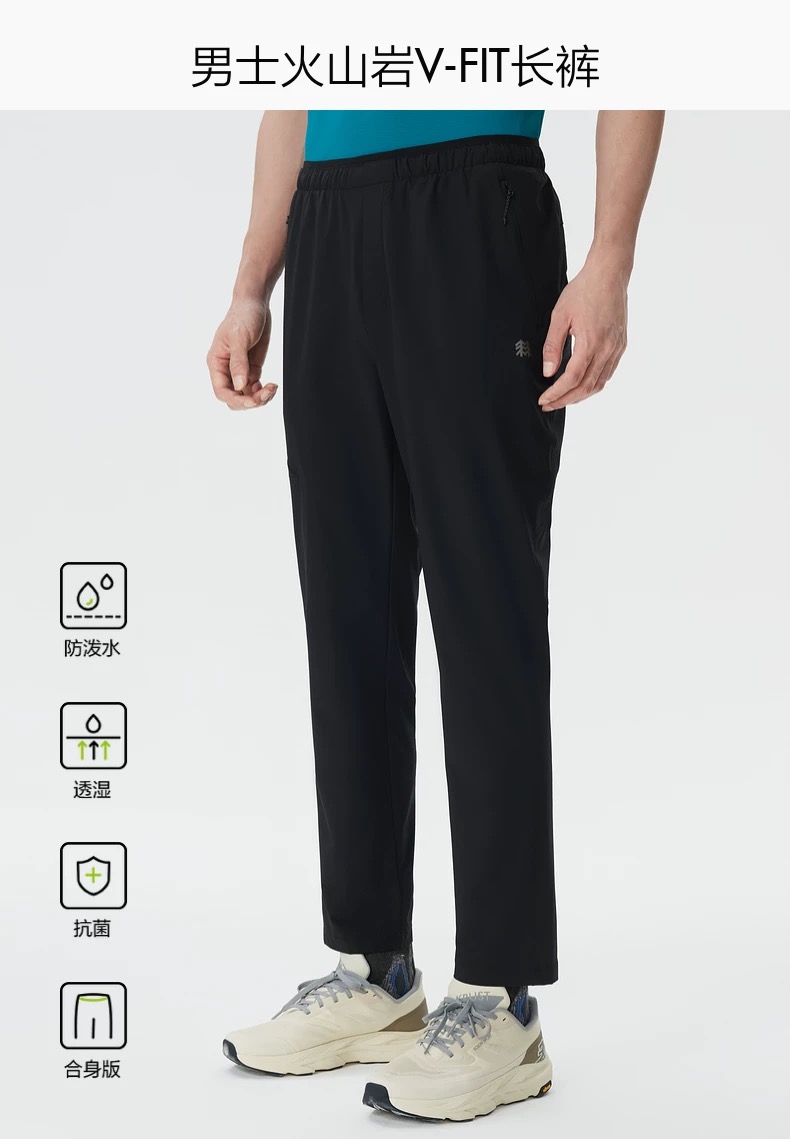 125 货号108775125 ll KOLON SPORT可隆软壳裤男款防泼水透湿抗菌防晒UPF50+火山岩长裤采用火山岩复合面料,具备防泼水、透湿、抗菌、防晒(UPF50+)四大核心功能。面料表面防泼水处理,能有效抵御小雨侵袭;内层高透湿结构,加速排汗散热,保持腿部干爽。同时,面料具备抗菌功能,抑制异味滋生,配合UPF50+高倍防晒,全面守护户外肌肤。