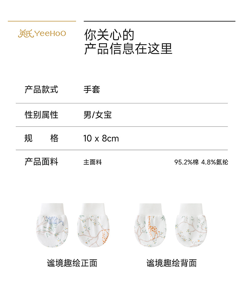 【商场同款】英氏婴幼儿手套防抓咬防吃手新生儿手套新款四季可用