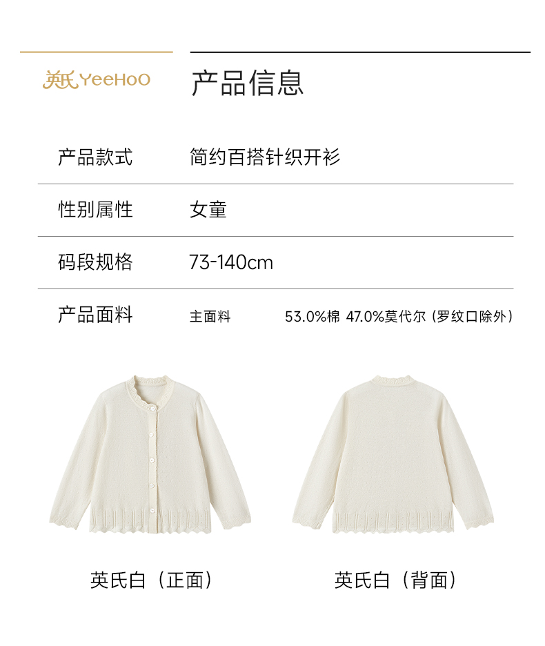 【商场同款】英氏儿童外套女童夏季休闲百搭开衫空调房短毛衫外套