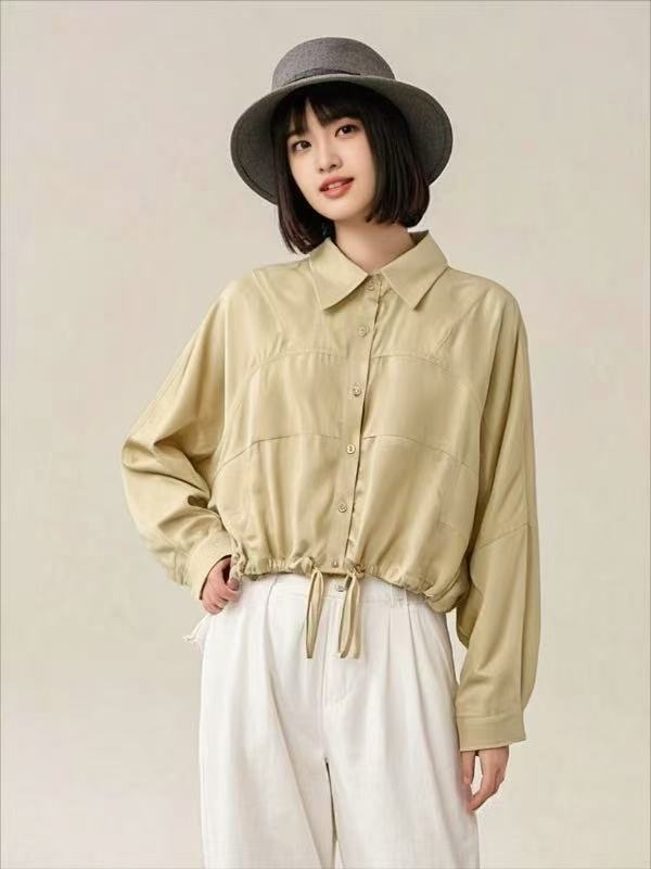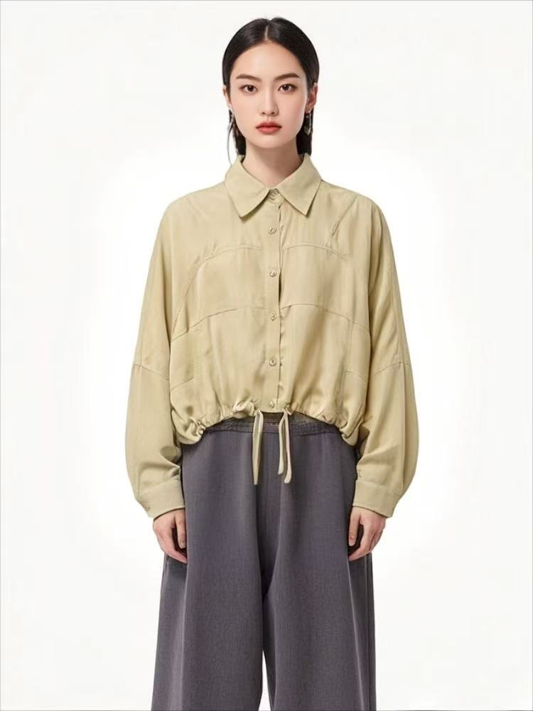 【时装系列】ME TOWN'S 蝙蝠袖花苞可抽绳下摆桃皮绒手感外套-喜出