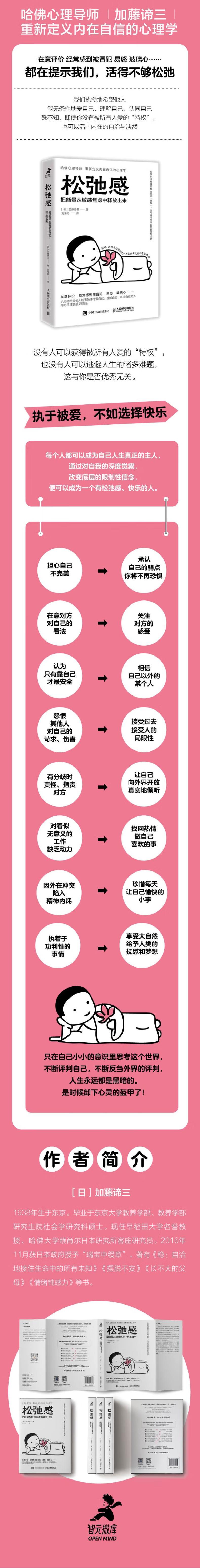 哈佛心理导师加藤谛三提出,每个人都可以成为自己人生真正的主人,通过对自我的深度觉察,改变底层的限制性信念,便可以成为一个有松弛感的、快乐的人。