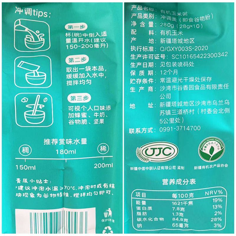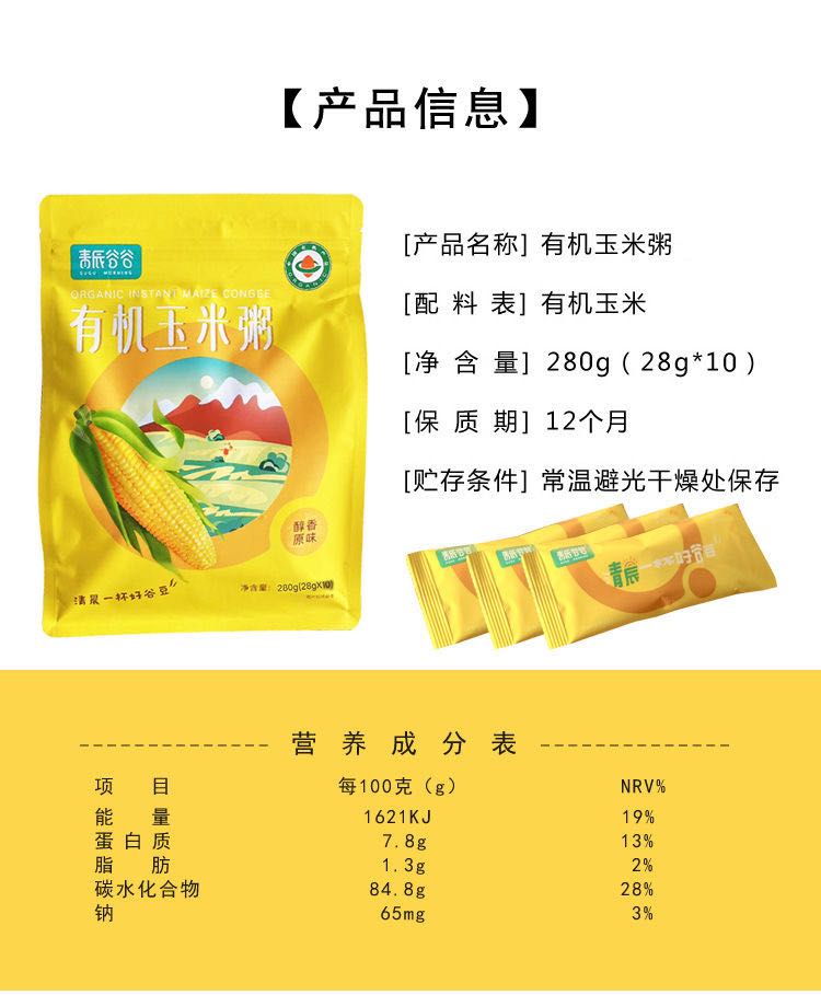 新疆青辰谷谷有机原味玉米粥营养早餐冲饮即食浓香玉米味280g/袋