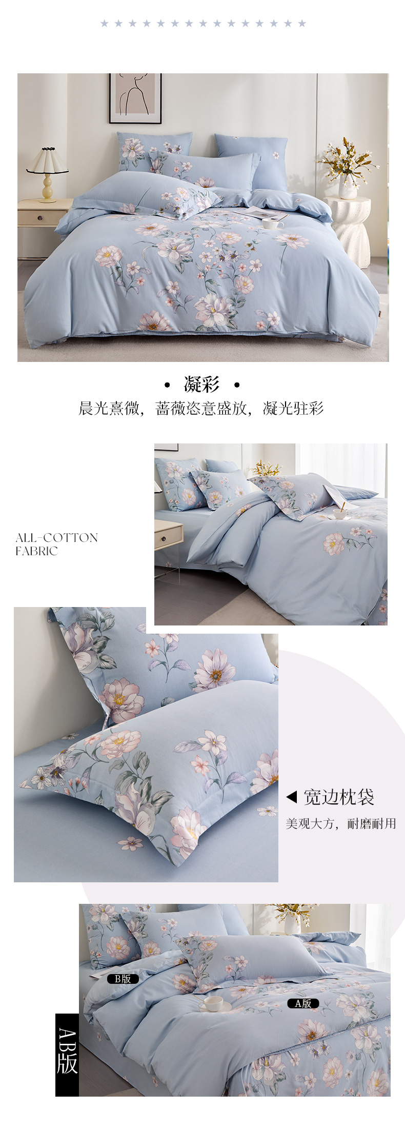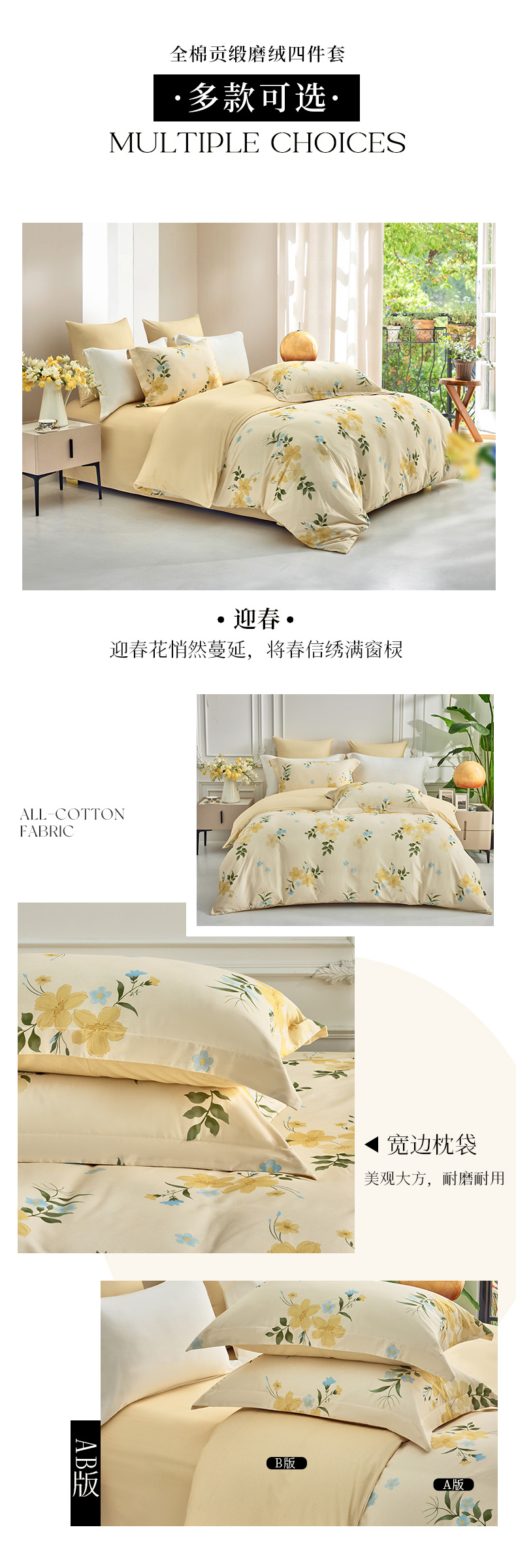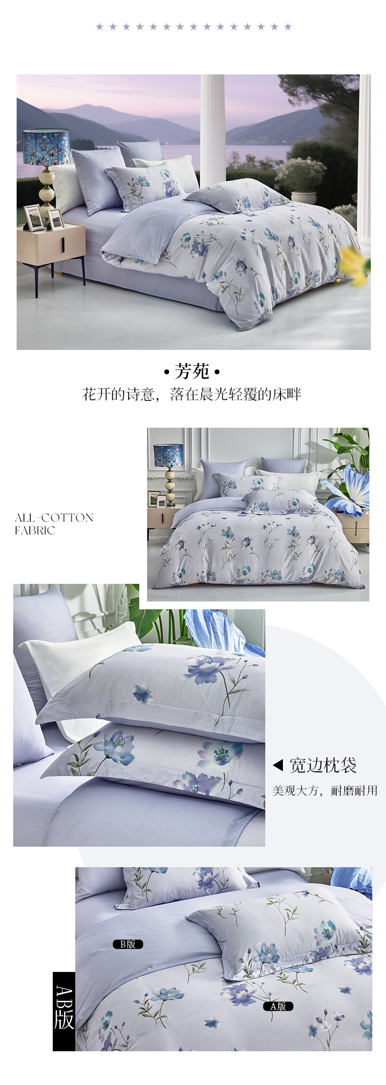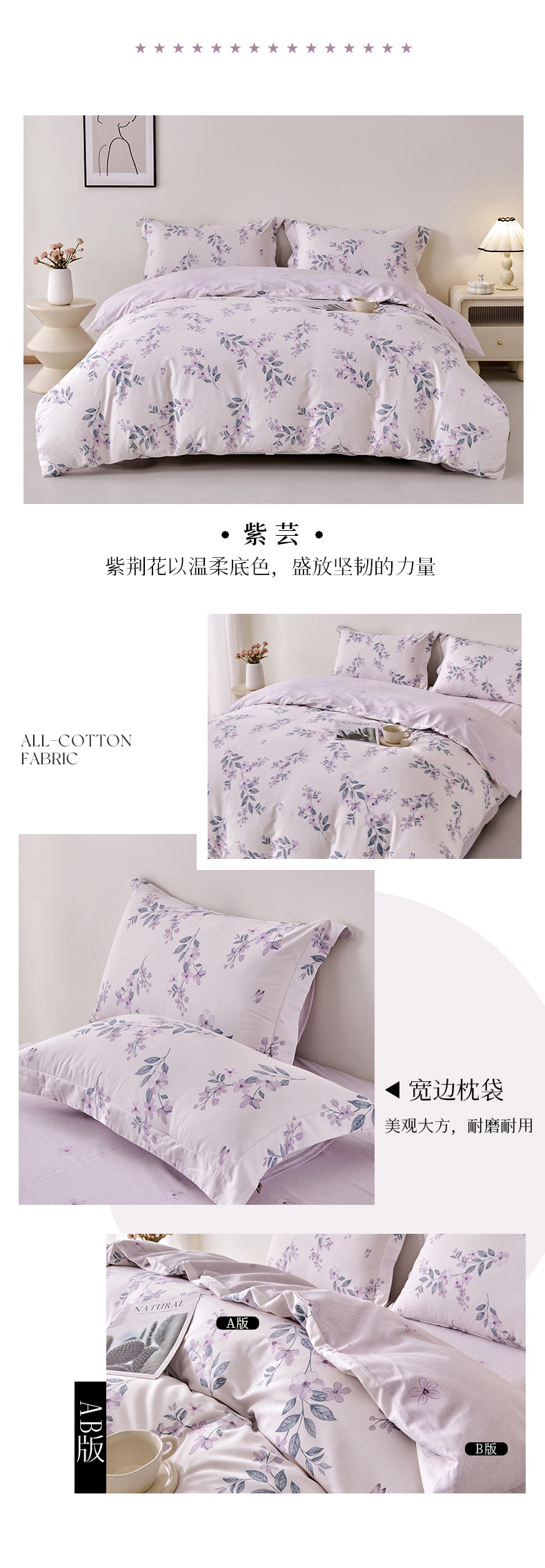 多喜爱 全棉贡缎磨绒四件套 秋瑾拾忆/花叶隐/凝彩/叶影光澜/空间密码/紫芸【7A抗菌】【精美礼盒包装】高密全棉 优雅花卉 细腻厚实 软糯磨绒 宽边枕套