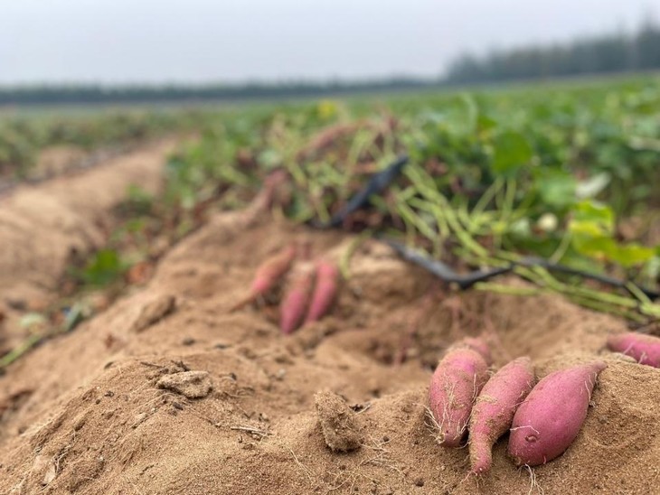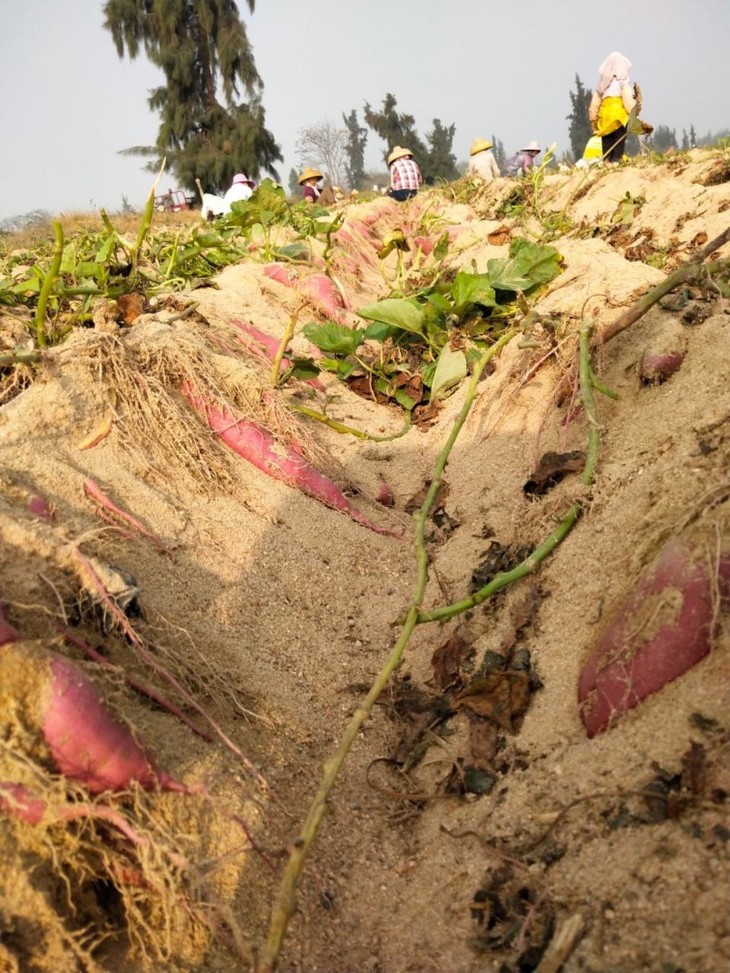 鸣门金时地瓜🍠在沙土中种植,沙土地土壤疏松轻轻拔一把地瓜蔓,红皮的地瓜轻松“面世