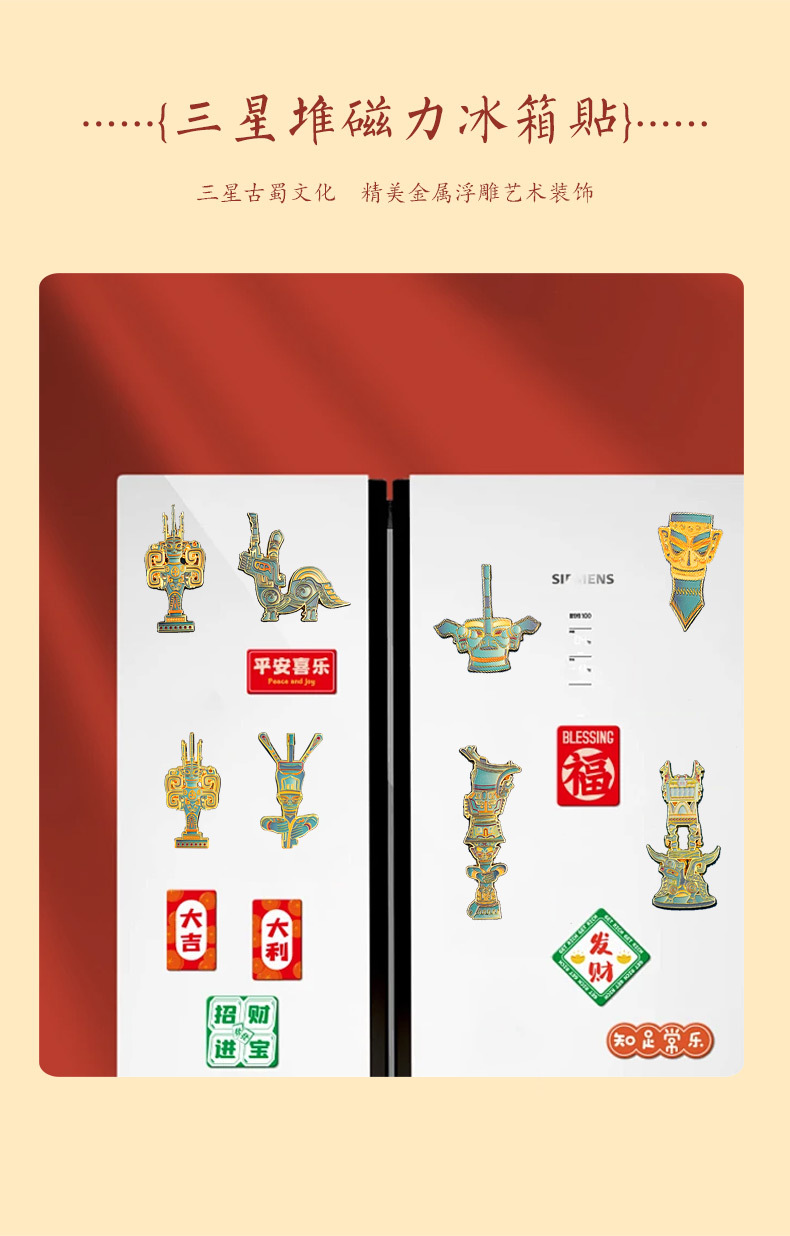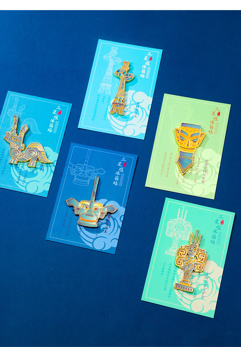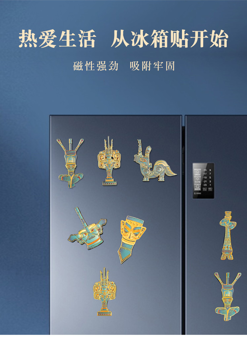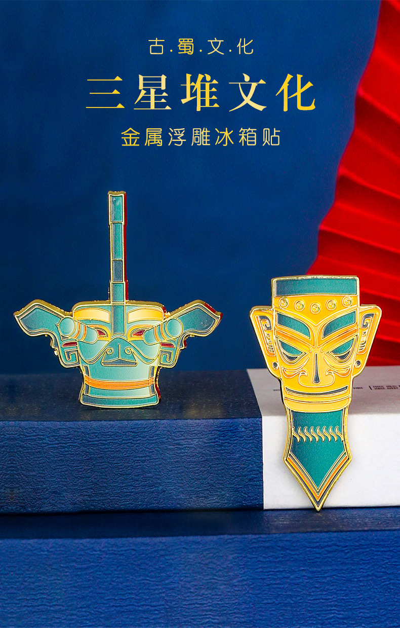 三星堆冰箱贴金属浮雕磁吸大立人面具博物馆文创旅游纪念品中国风