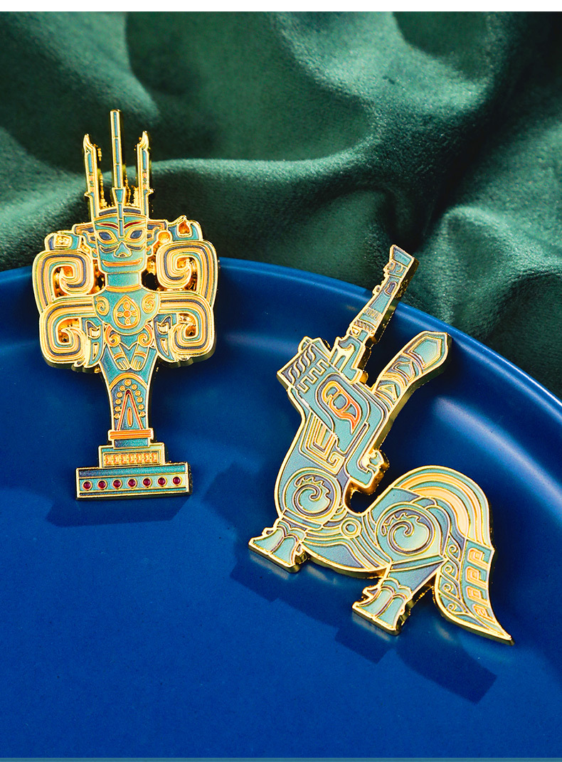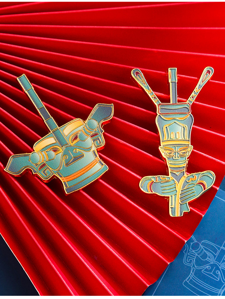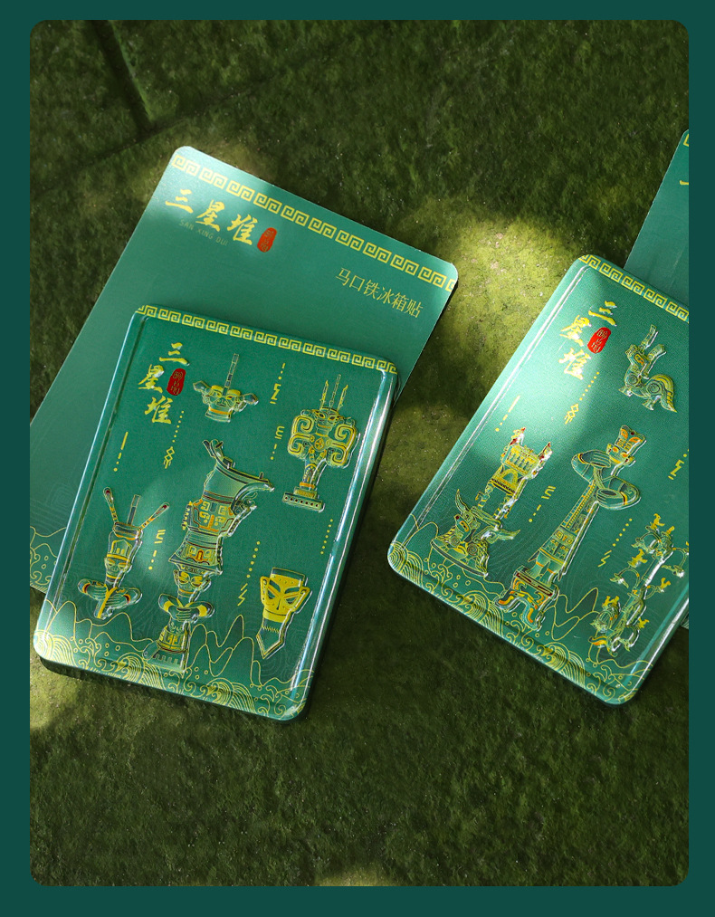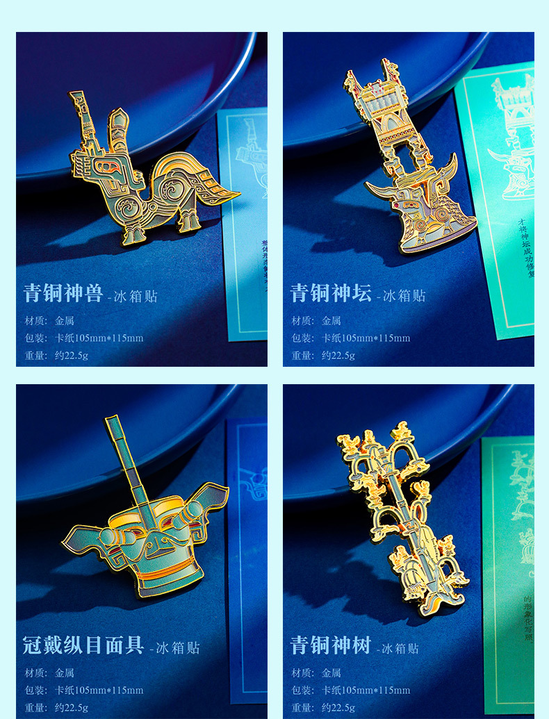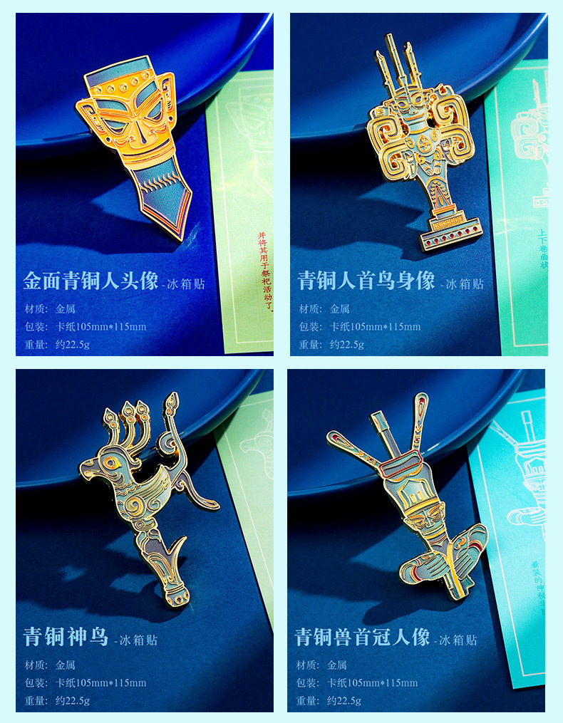 三星堆冰箱贴金属浮雕磁吸大立人面具博物馆文创旅游纪念品中国风