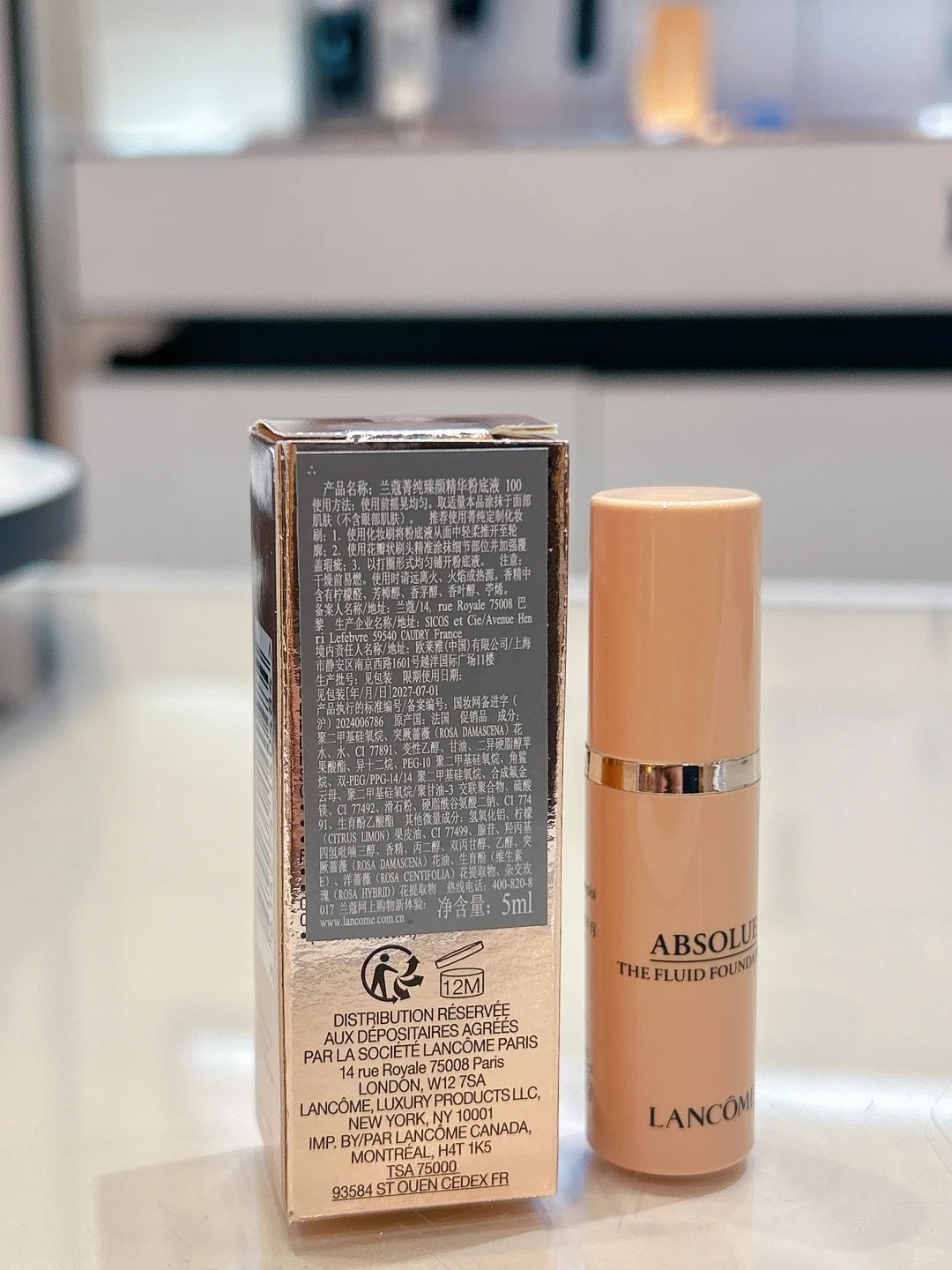专柜35ml990 无敌细腻不卡粉 法国兰蔻菁纯臻颜粉底液中样5ML 100#色号