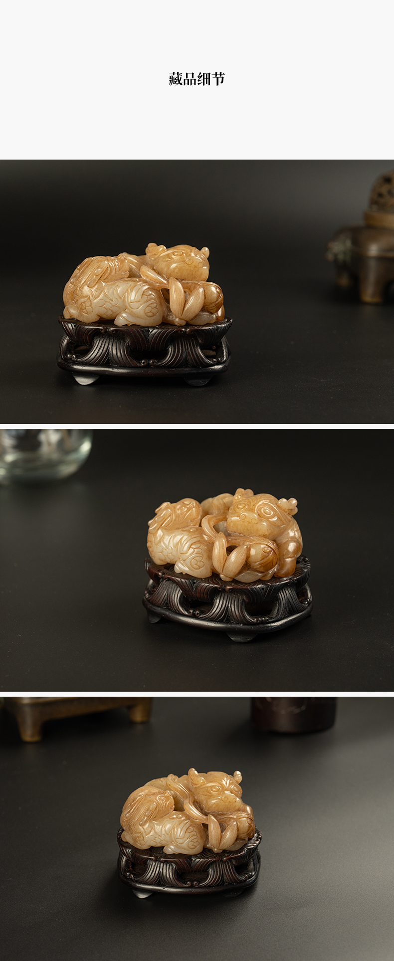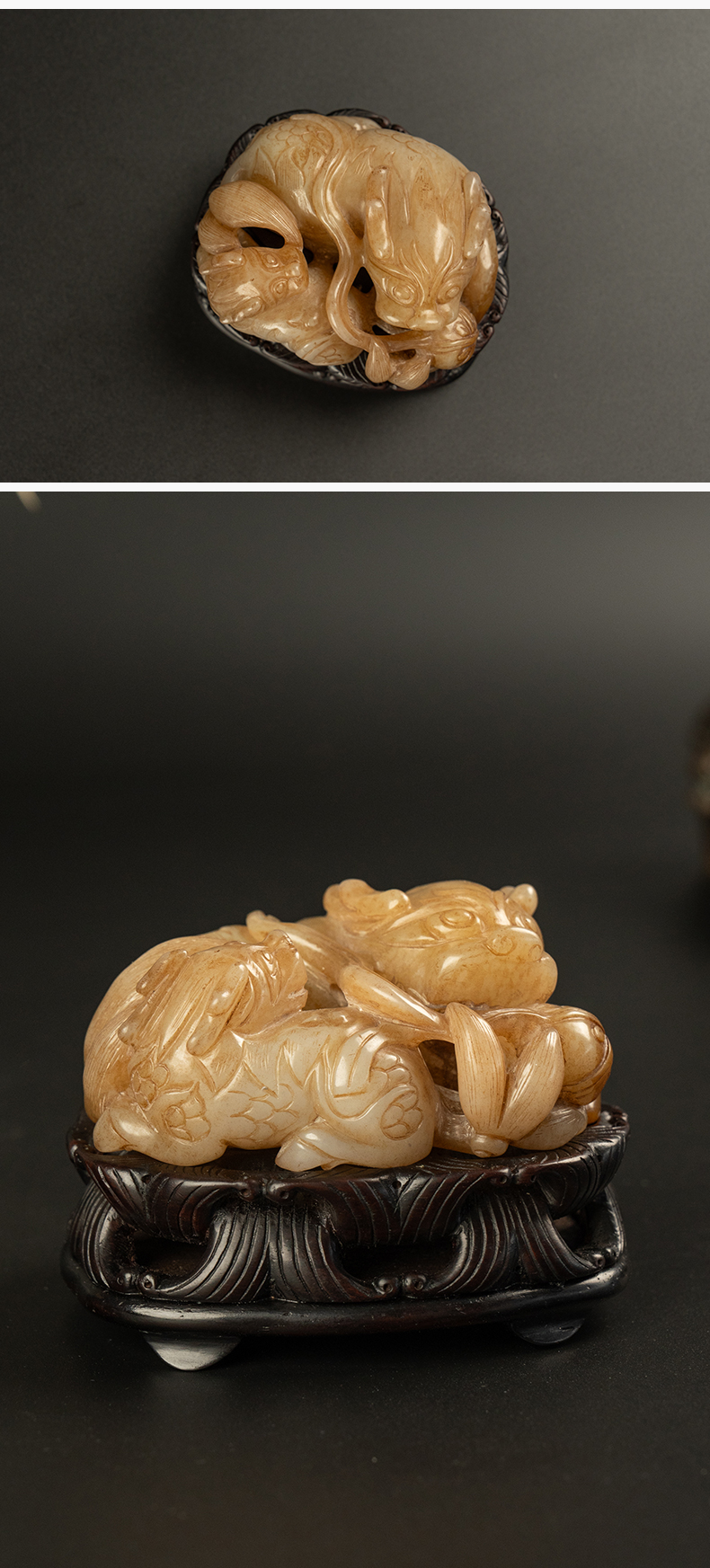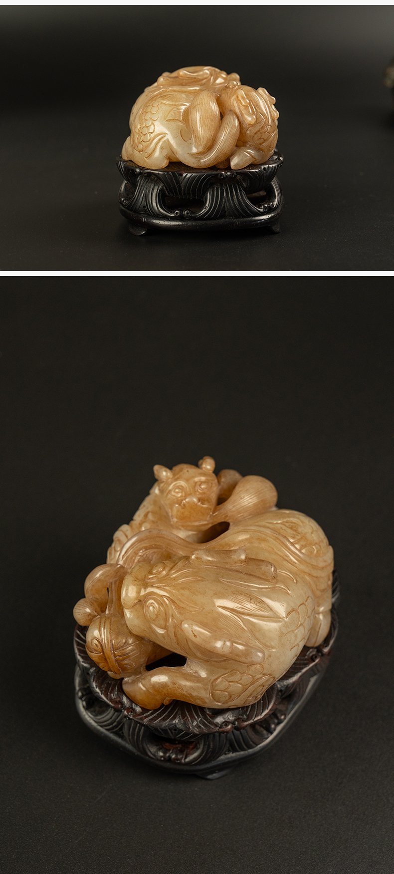 清 沈景修款端石狮纹辟雍砚(红木天地盖)