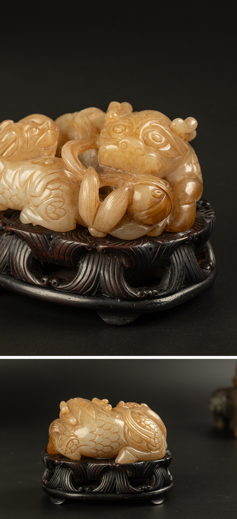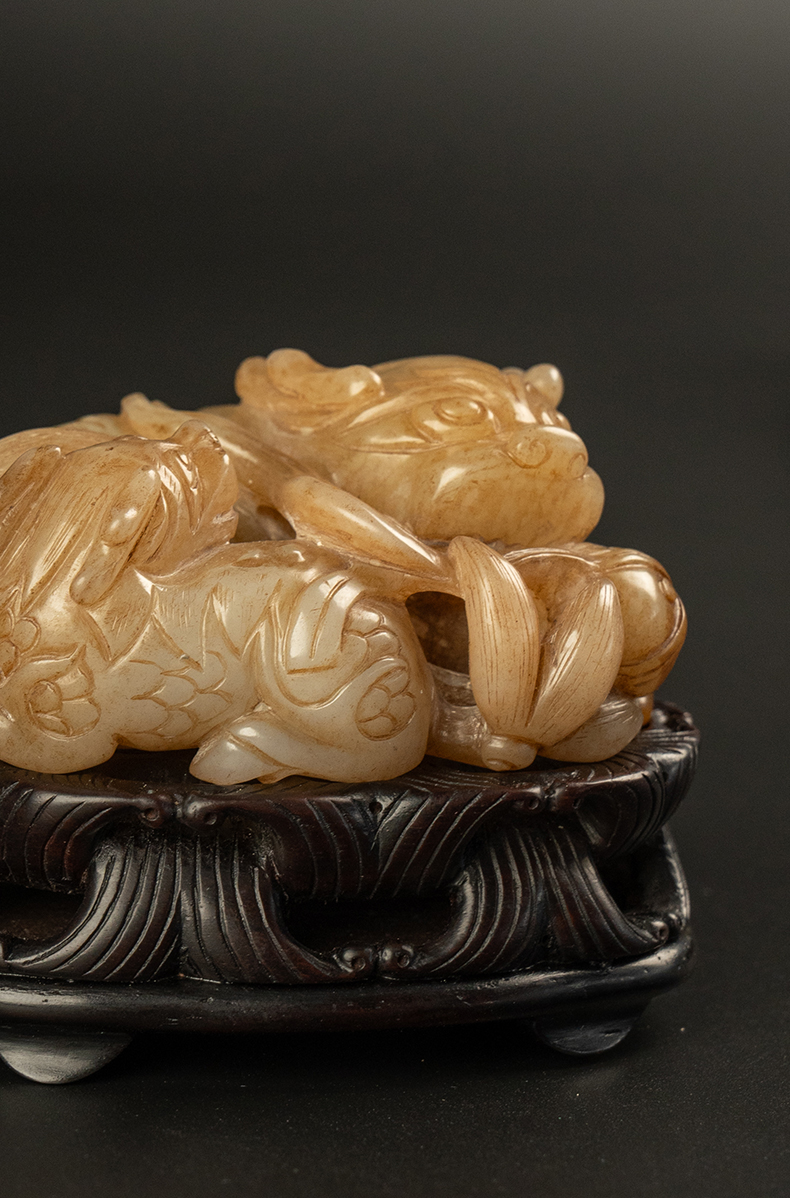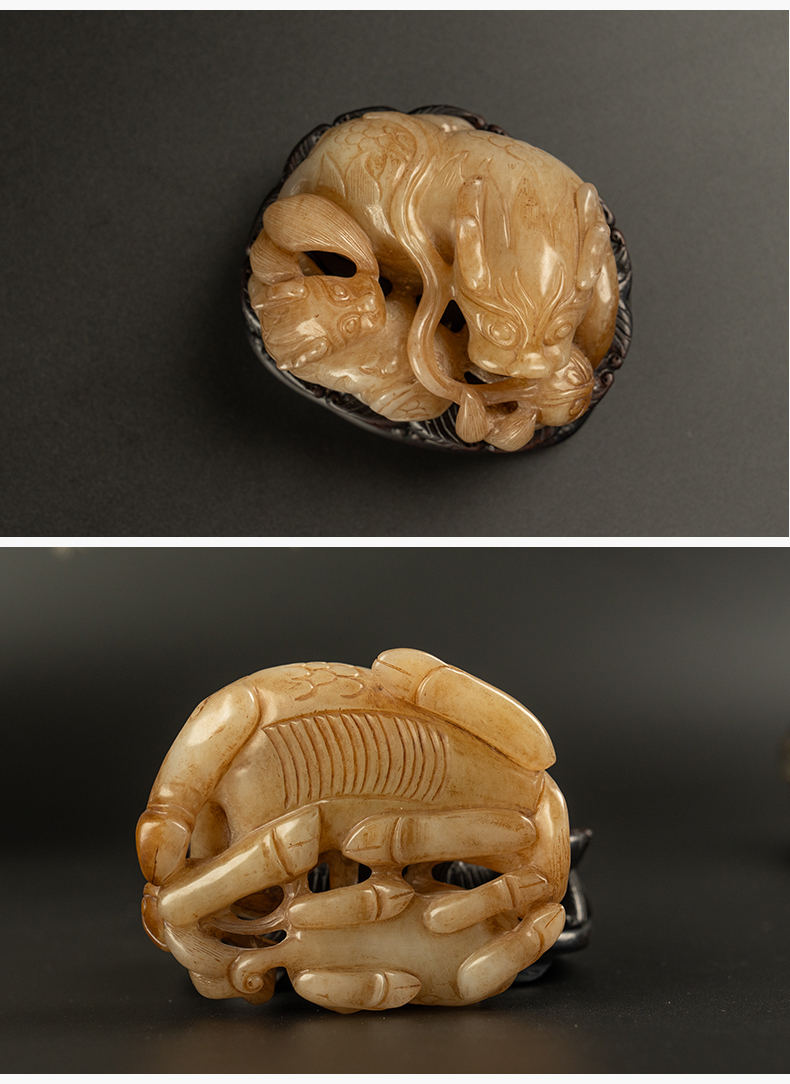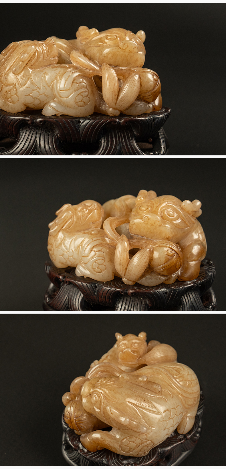 清 沈景修款端石狮纹辟雍砚(红木天地盖)