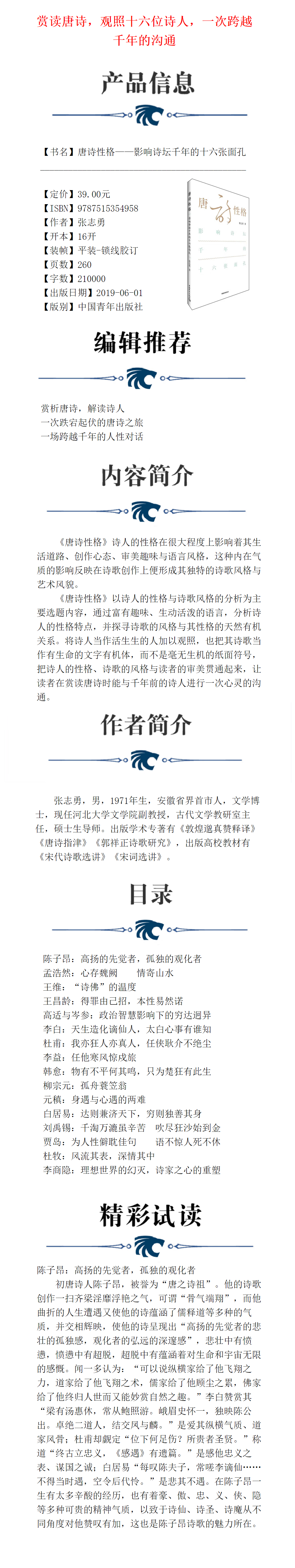 唐诗性格——影响诗坛千年的十六张面孔 张志勇著 中国青年出版社