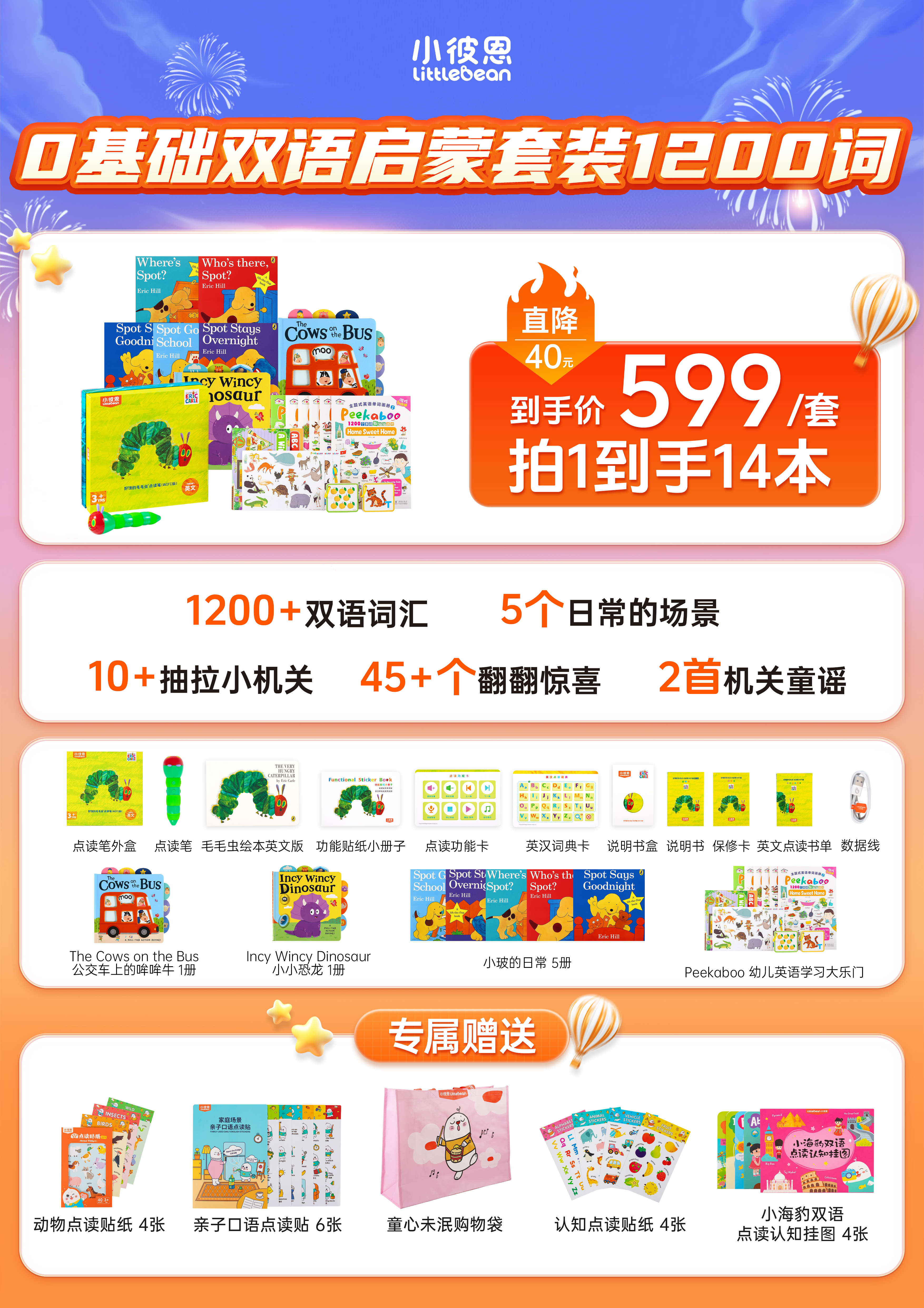 "【0~3岁0基础英文启蒙套装】轻松掌握1200词"