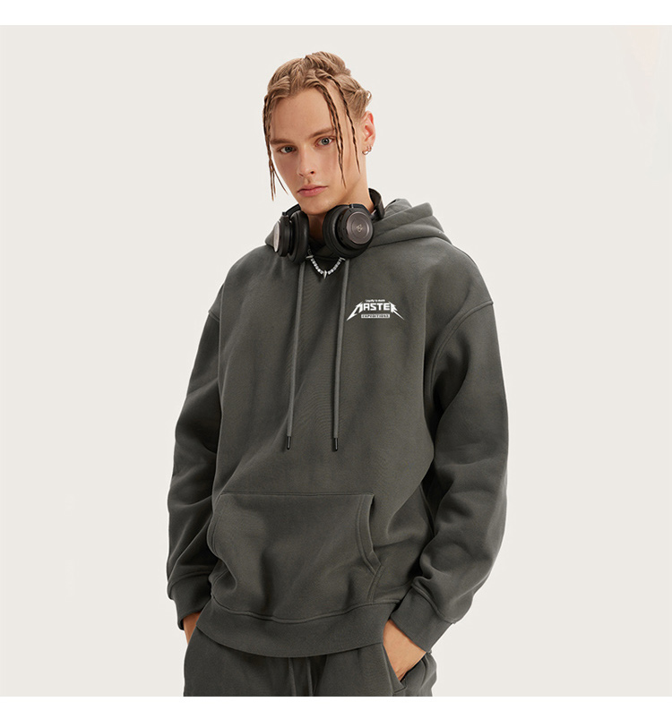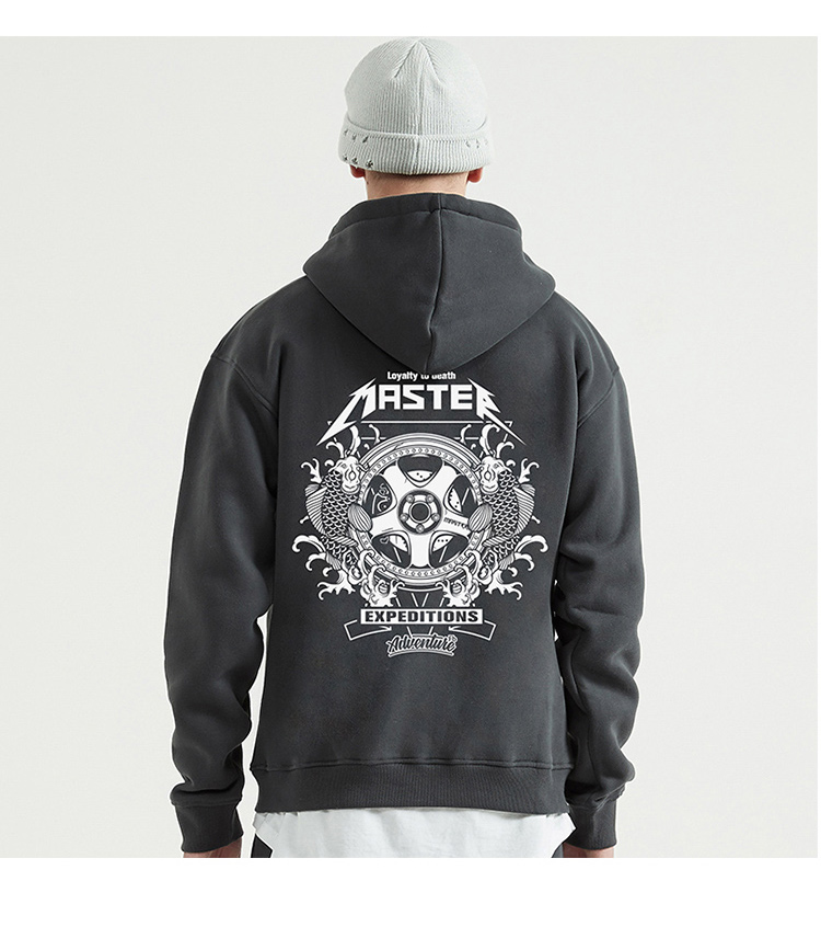 自由基地冬季保暖抓绒带帽套头oversize落肩机车越野团日系风卫衣 NMT-2087