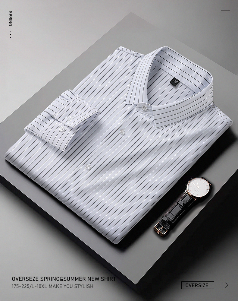 【超大码】【新款DM】大依优型高弹竖条纹长袖衬衫男宽松加肥加大码男士休闲商务衬衣上衣胖子